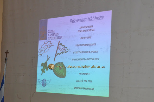 Οι πρόσκοποι Αλεξάνδρειας πραγματοποίησαν την κοπή της πρωτοχρονιάτικης πίτας και τον απολογισμό των δράσεων του 2015 το πρωί της Κυριακής 31 Ιανουαρίου 2016 στο δημαρχείο της Αλεξάνδρειας.