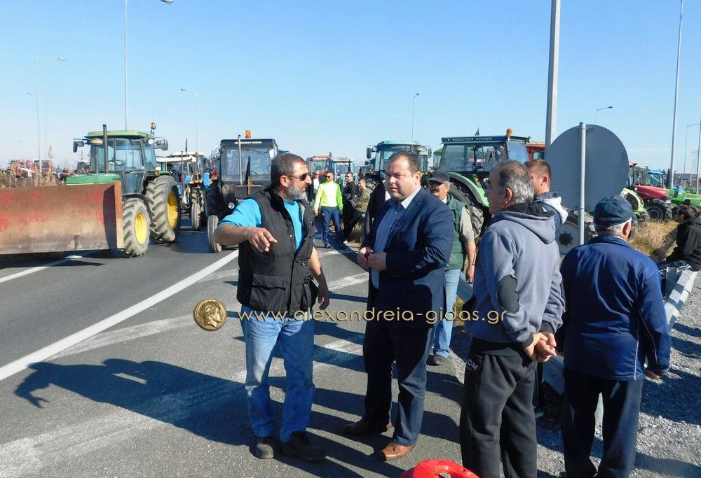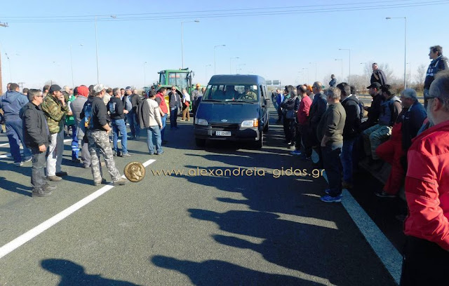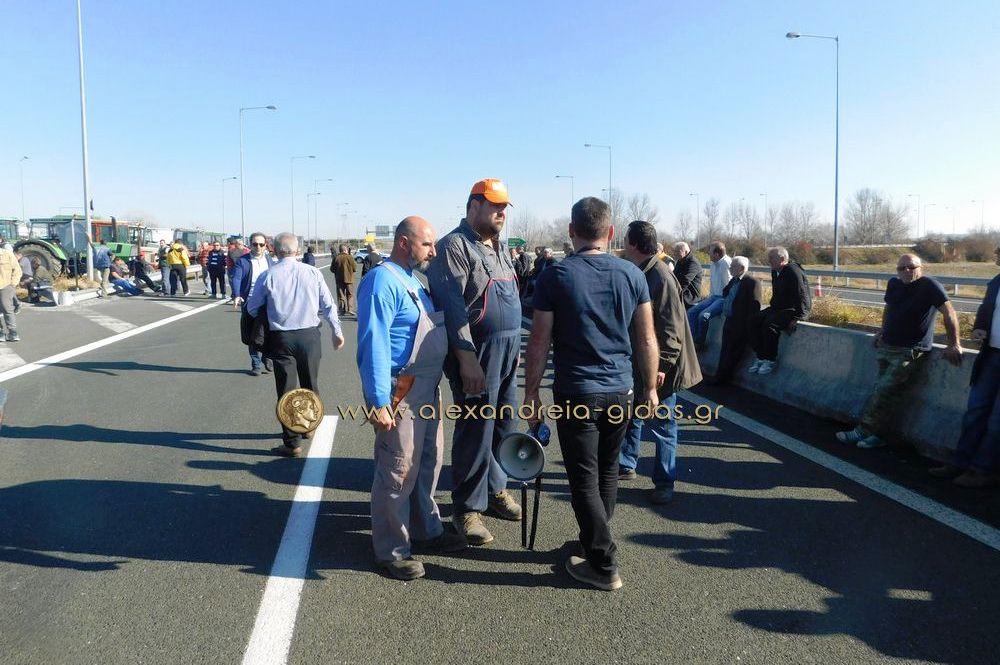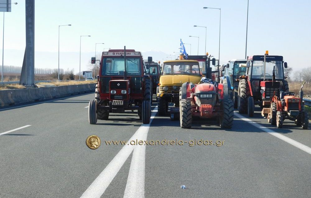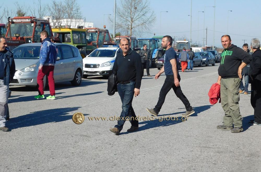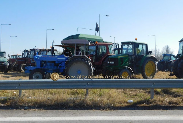 trakter11Τηρώντας την απόφαση που πήραν στη Γενική Συνέλευση της Κυριακής 31 Ιανουαρίου, οι αγρότες του δήμου Αλεξάνδρειας έβγαλαν το μεσημέρι της Δευτέρας 1 Φεβρουαρίου τα τρακτέρ του στην Εγνατία Οδό κλείνοντας επ΄ αόριστον το ρεύμα προς τη Βέροια από τον κόμβου του Νησελίου.