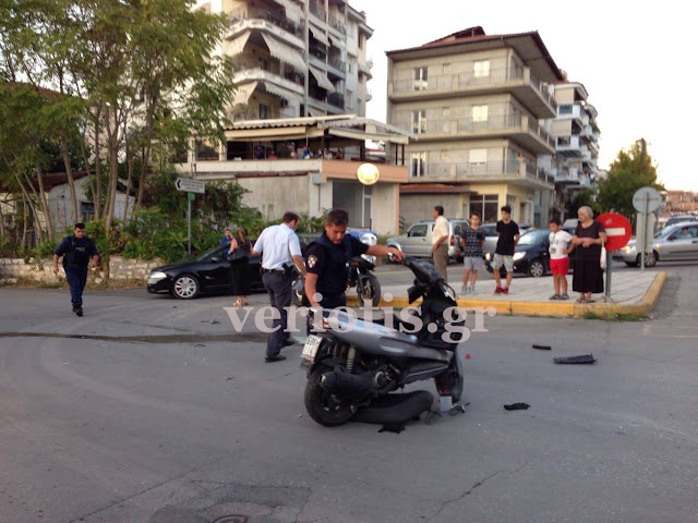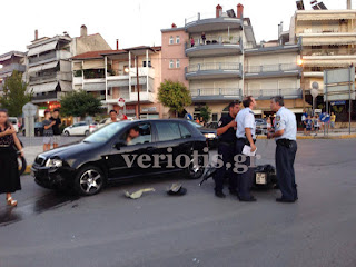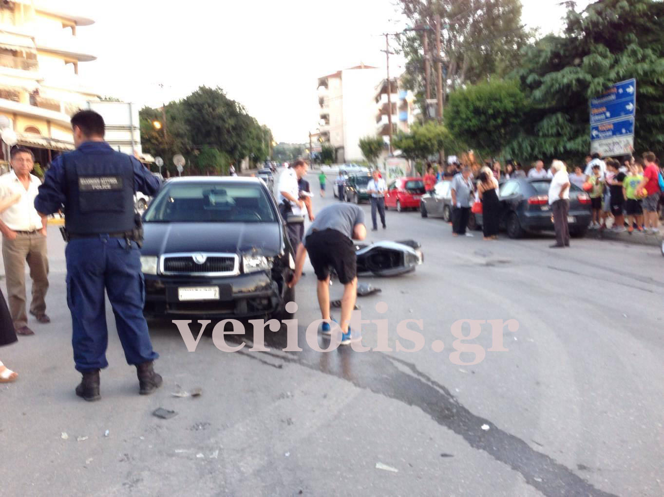 Δύο αυτοκίνητα χτύπησαν γυναίκα πάνω σε μηχανάκι στη Βέροια (φώτο)