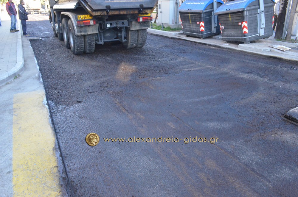 Σε σοβαρή διόρθωση της ασφάλτου σε κομμάτι της Βετσοπούλου προχώρησε ο δήμος Αλεξάνδρειας το πρωί της Τρίτης 2 Φεβρουαρίου.