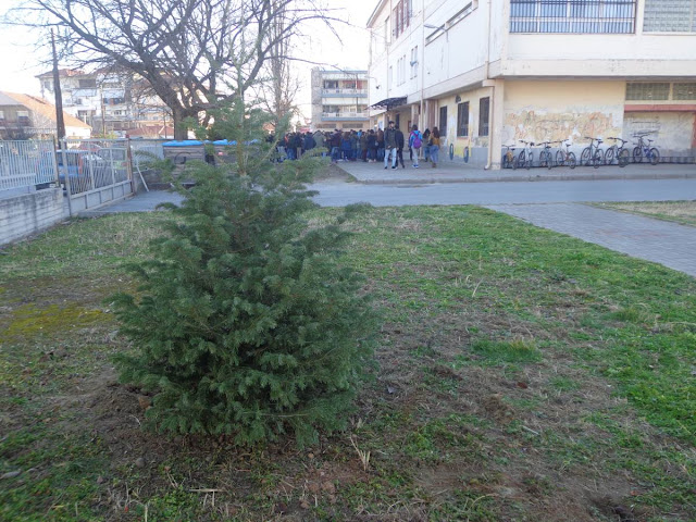 Το φυσικό έλατο που στολίσαμε στο ισόγειο του σχολείου μας για τα Χριστούγεννα βρήκε την τελική του θέση στην αυλή αφού φυτεύτηκε από τους μαθητές της τρίτης τάξης του Γυμνάσιου.