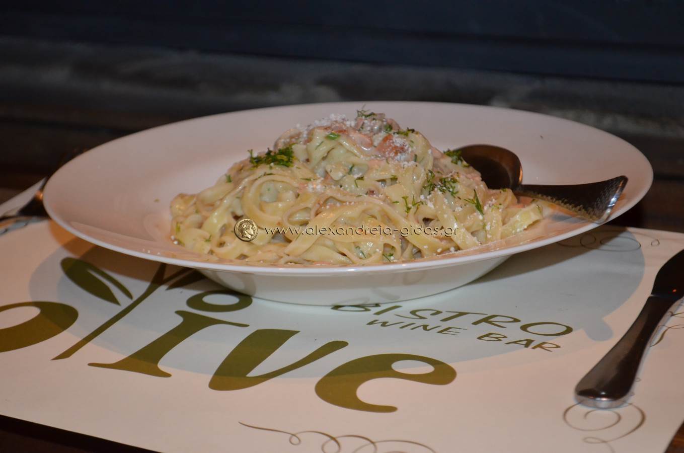 Ταλιατέλες με καπνιστό σολομό, άνηθο και κρέμα γάλακτος με 1 ποτήρι κρασί δώρο