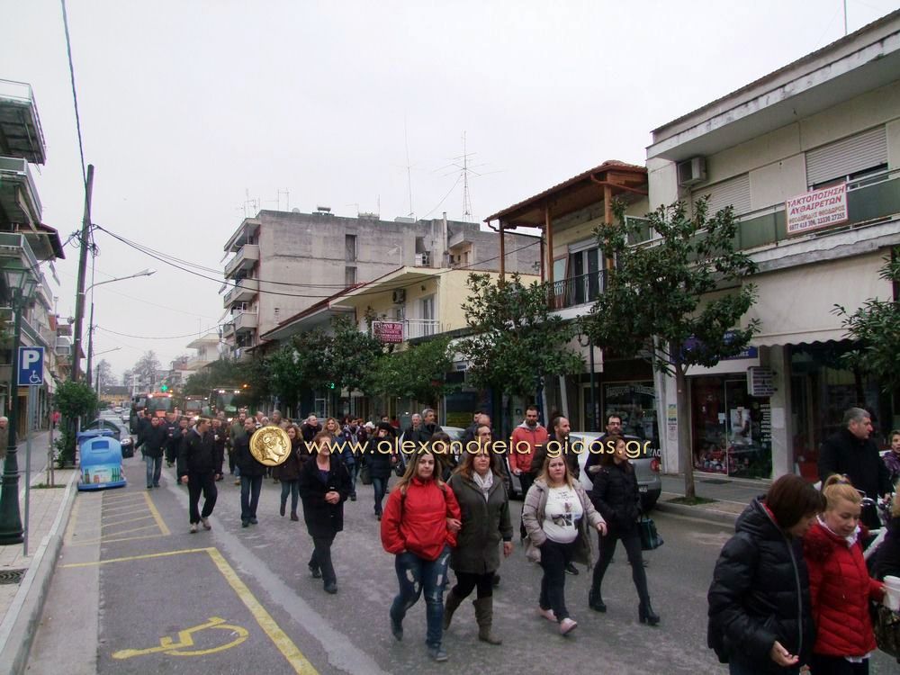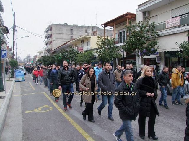 Πορεία διαμαρτυρίας πραγματοποιήθηκε το πρωί της Πέμπτης 4 Φεβρουαρίου στην οδό Βετσοπούλου στην Αλεξάνδρεια από τον Εμπορικό Σύλλογο της πόλης μας.
