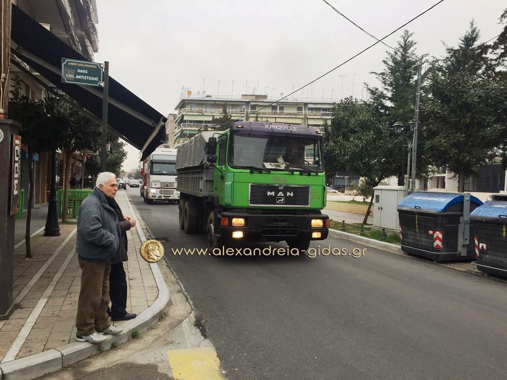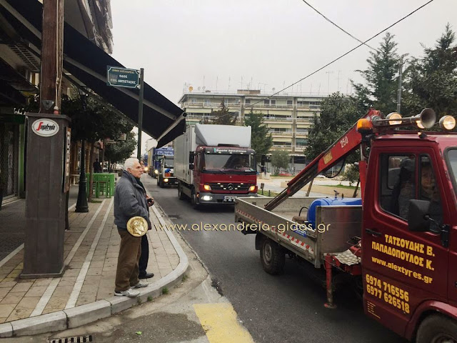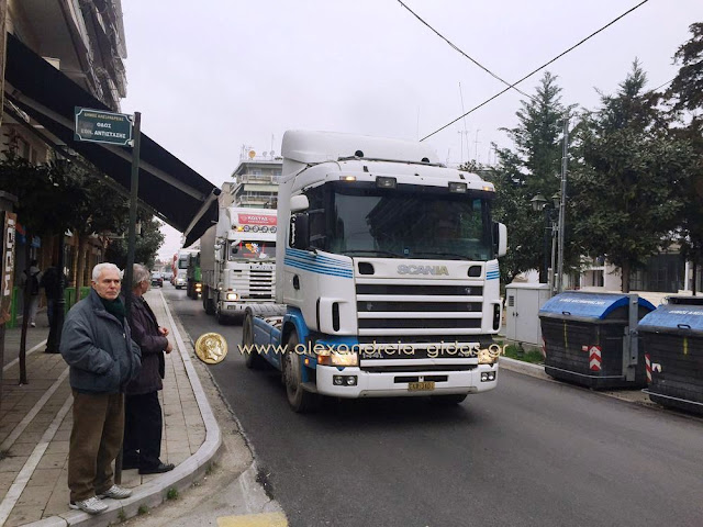 Πορεία στην Βετσοπούλου πραγματοποίησαν οι οδηγοί φορτηγών του δήμου Αλεξάνδρειας συμπαραστεκόμενοι στον αγώνα των αγροτών.