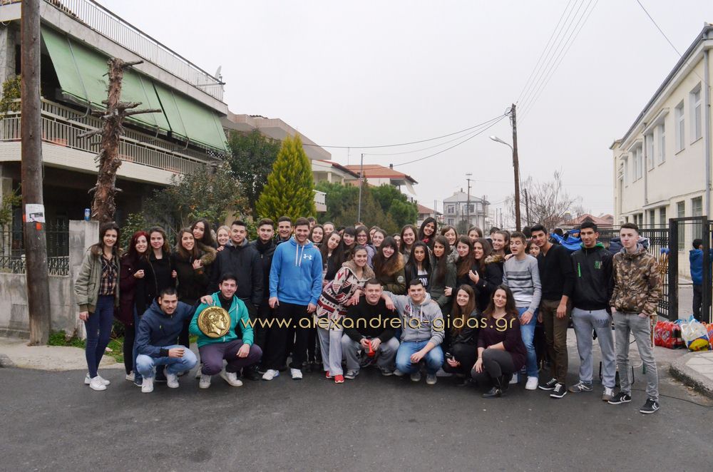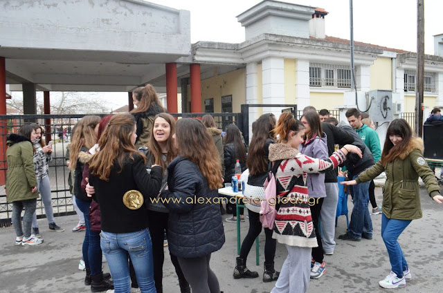 Την καθιερωμένη γιορτή πραγματοποίησαν το πρωί έξω από το σχολείο τους οι μαθητές της Γ΄ Τάξης του 1ου Γενικού Λυκείου Αλεξάνδρειας, μία ημέρα πριν αναχωρήσουν για την σχολική τους εκδρομή.