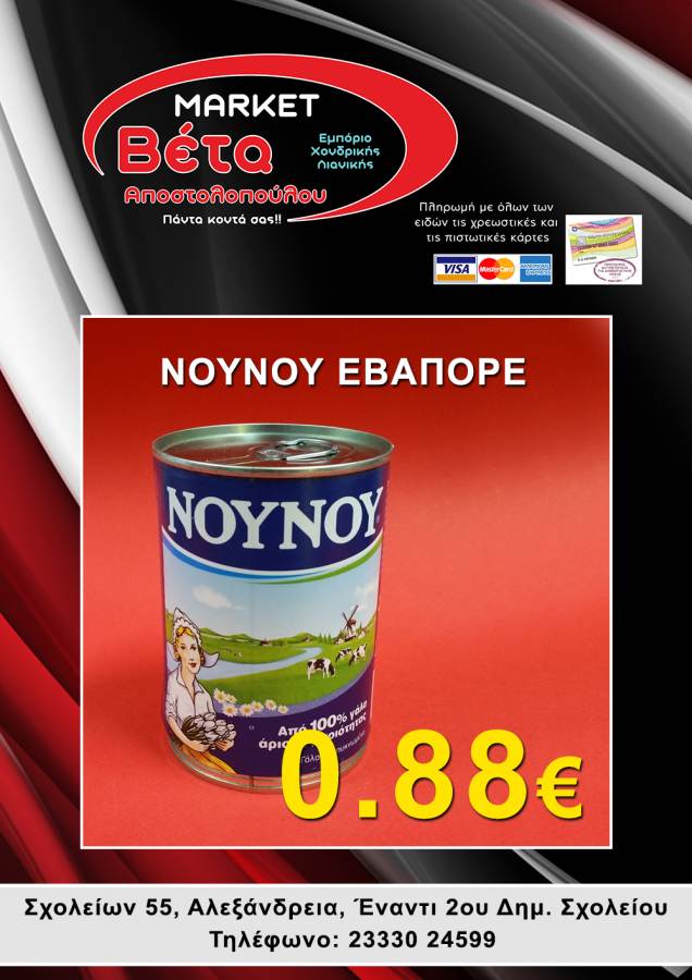Το μάρκετ ΒΕΤΑ Αποστολοπούλου, βρίσκεται στην οδό Σχολείων 55 στην πόλη μας απέναντι από το 2ο Δημοτικό Σχολείο Αλεξάνδρειας.
