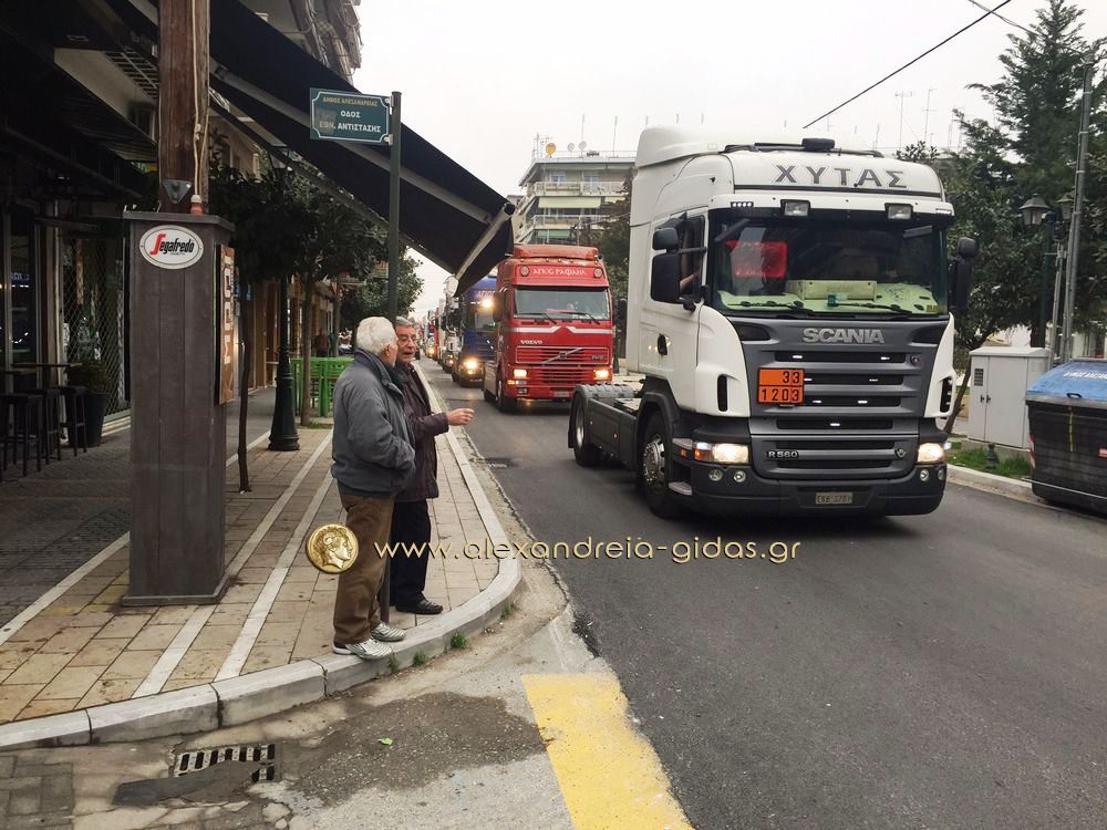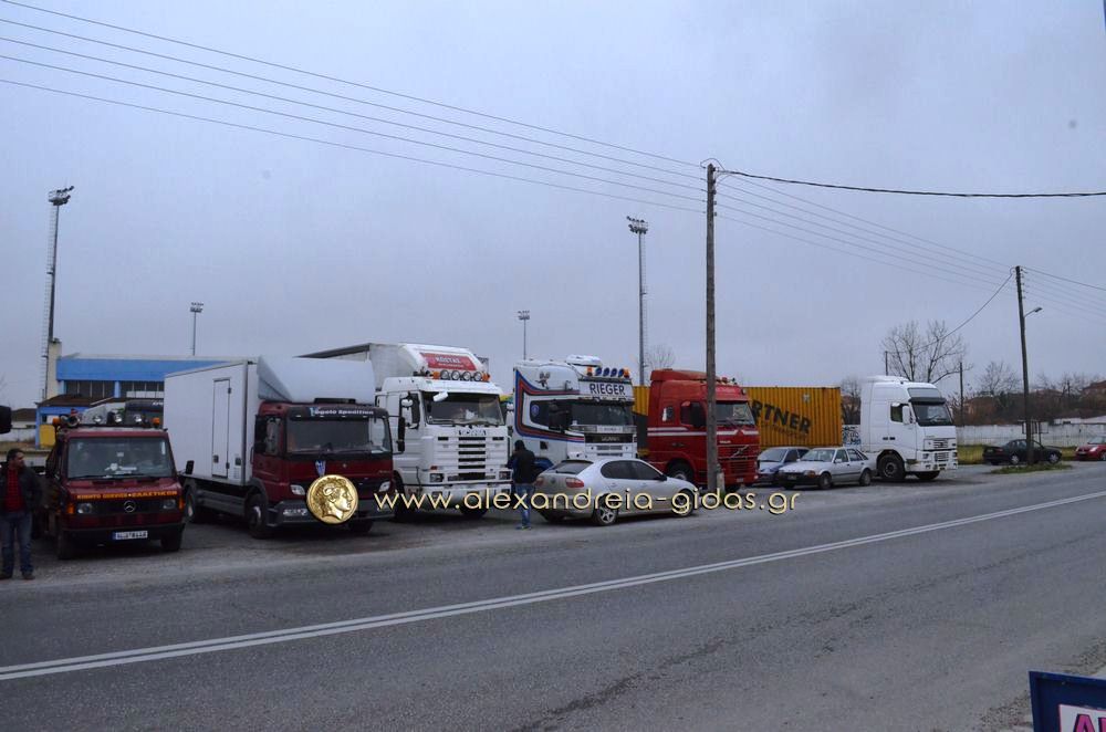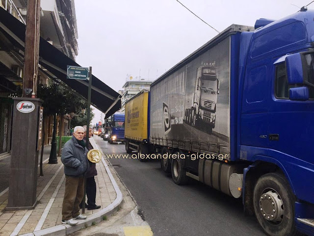 Δυναμική ήταν η κινητοποίηση των οδηγών φορτηγών του δήμου Αλεξάνδρειας σήμερα Πέμπτη 4 Φεβρουαρίου.