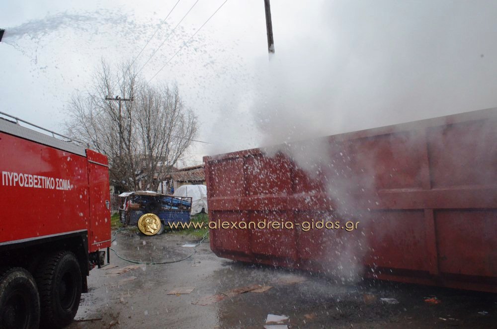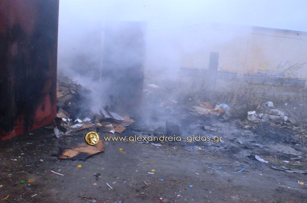 Φωτιά ξέσπασε σε κοντέινερ συγκέντρωσης χαρτιών στην πόλη της Αλεξάνδρειας το απόγευμα της Παρασκευής 5 Φεβρουαρίου.