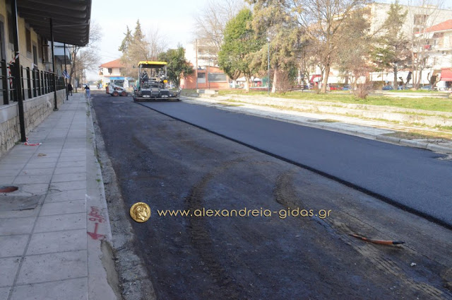 Μπροστά από τα κτίρια του ΟΠΑΚΟΜ και του ΚΑΠΗ Αλεξάνδρειας το πρωί της Τρίτης 9 Φεβρουαρίου τοποθετείται άσφαλτος. Εκεί συναντήσαμε τον πρόεδρο του ΟΠΑΚΟΜ Σάκη Παντόπουλο ο οποίος δεν έκρυψε την ικανοποίηση για την πορεία των έργων.