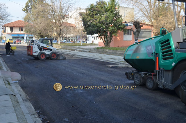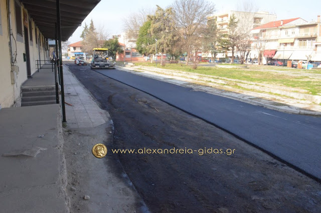 Μπροστά από τα κτίρια του ΟΠΑΚΟΜ και του ΚΑΠΗ Αλεξάνδρειας το πρωί της Τρίτης 9 Φεβρουαρίου τοποθετείται άσφαλτος. Εκεί συναντήσαμε τον πρόεδρο του ΟΠΑΚΟΜ Σάκη Παντόπουλο ο οποίος δεν έκρυψε την ικανοποίηση για την πορεία των έργων.
