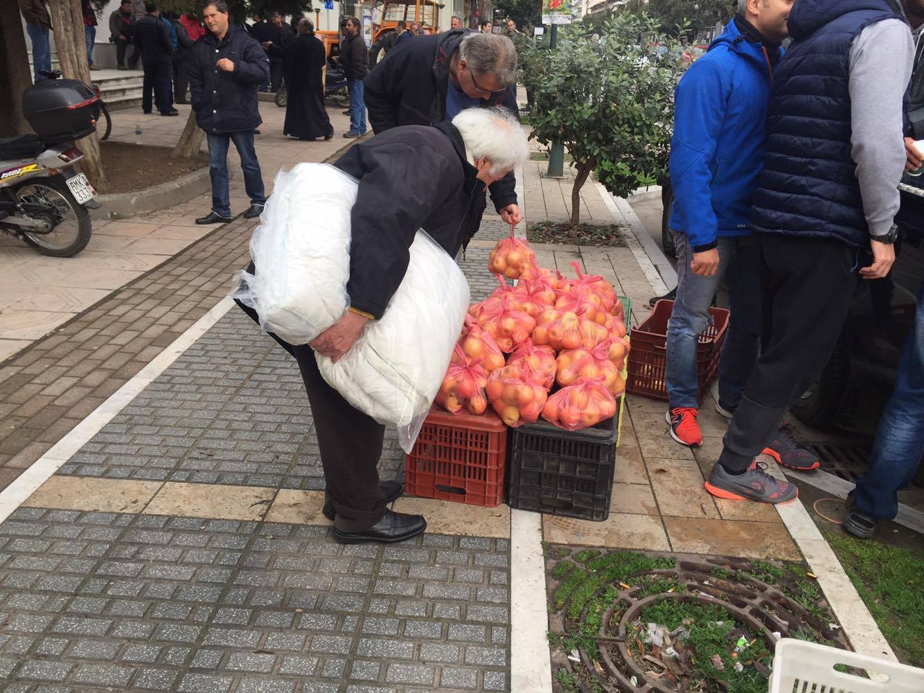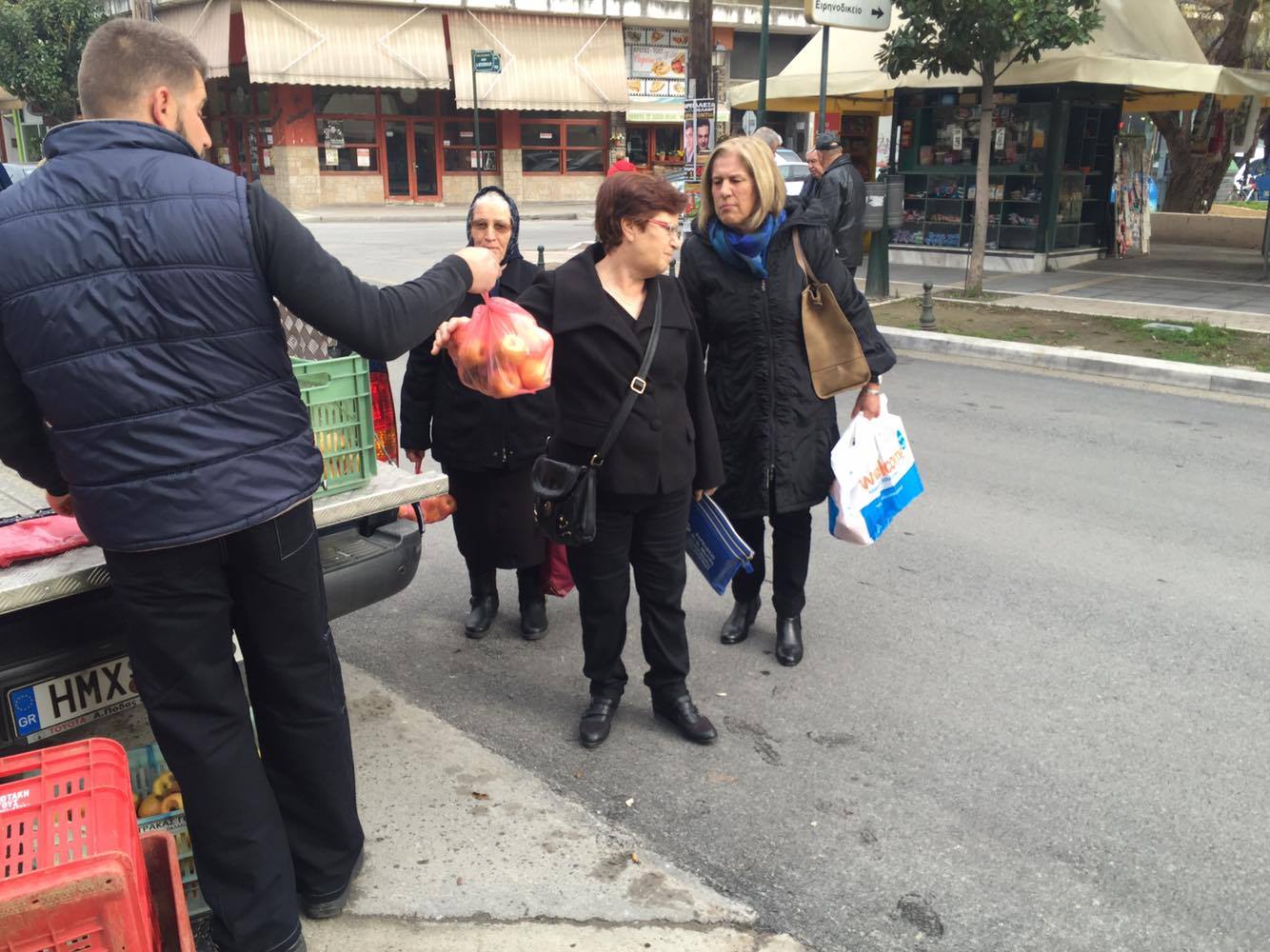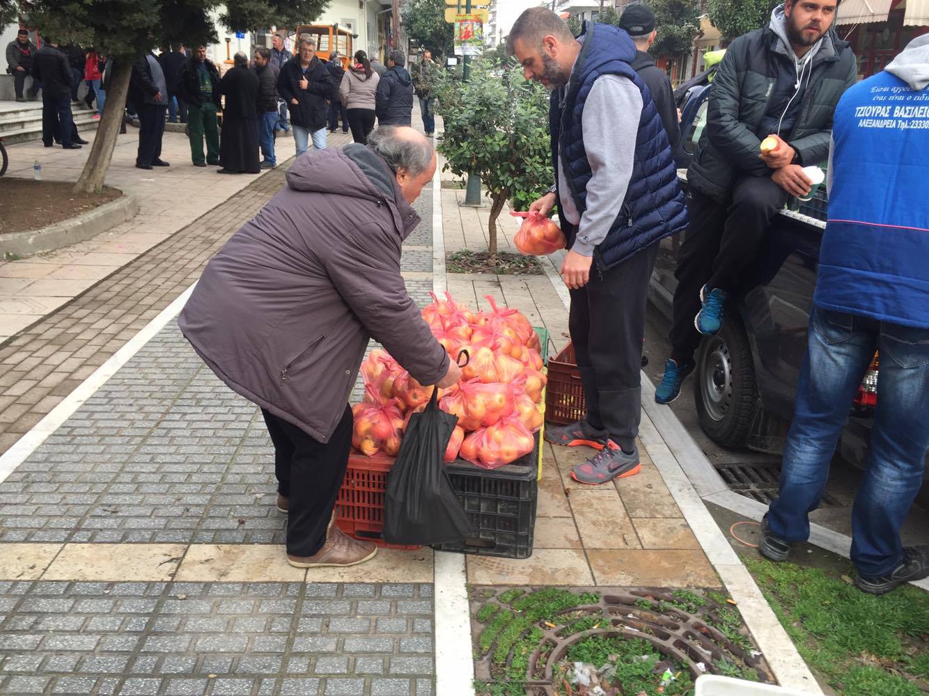 Κατά τη διάρκεια της παρουσίας τους εκεί, οι αγρότες ενημέρωσαν τον κόσμο για την κινητοποίησή τους και τους μοίρασαν μήλα όπως θα δείτε στις παρακάτω εικόνες: