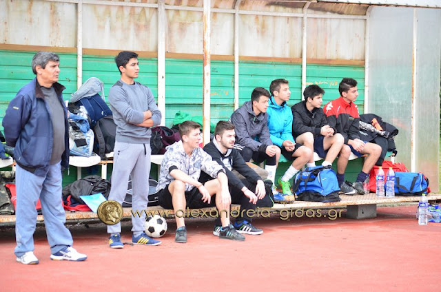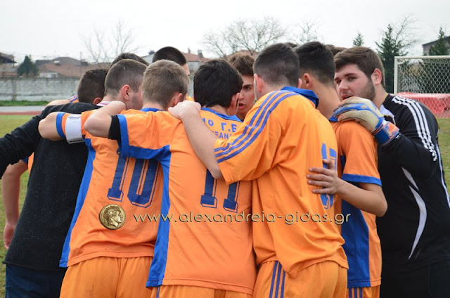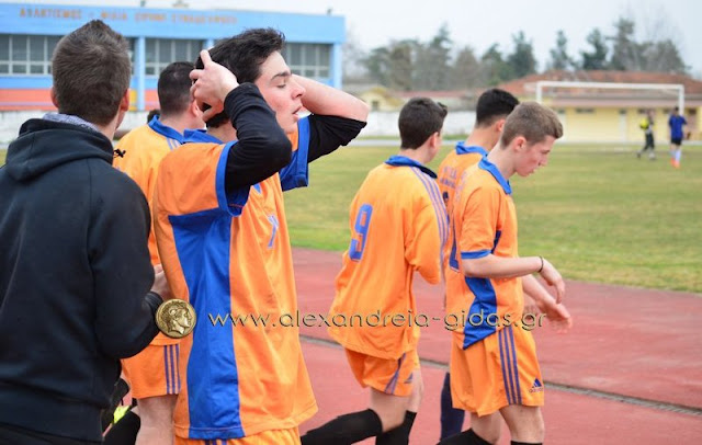 Το ΓΕΛ Μελίκης προηγήθηκε με τον Ζησιόπουλο στο 45΄ (0-1). Το 1ο ΓΕΛ Αλεξάνδρειας ισοφάρισε σε 1-1 με πέναλτι του Τσιρίδη, πέναλτι το οποίο κέρδισε ο Περπερίδης, φάση στην οποία διαμαρτυρήθηκαν έντονα οι φιλοξενούμενοι (βίντεο με replay παρακάτω). Το τελικό 2-1 πέτυχε ο Χαρπίδης που χάρισε τη νίκη και την πρώτη θέση στο 1ο ΓΕΛ Αλεξάνδρειας.