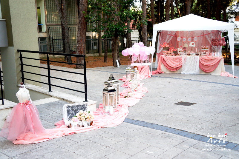 Το προσκλητήριο, με έναν άγγελο βγαλμένο από το παρελθόν, σε σομόν αποχρώσεις ήταν η αρχή αυτής της όμορφης εκδήλωσης. Το ρομαντικό μπουντουάρ, η λαμπάδα, τα λαδόπανα και τα αξεσουάρ, όλα συνδυασμένα μεταξύ τους επιλέχθηκαν σύμφωνα με τα χρώματα της βάπτισης.