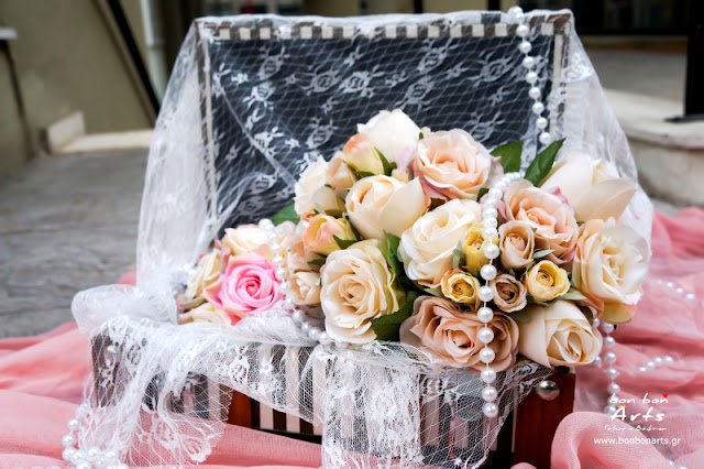 Η εκκλησία στολισμένη με όμορφα διακοσμητικά, το τραπέζι των γλυκών ντυμένο με δαντέλες και οι κρεμαστές μπομπονιέρες που ανέμιζαν, εντυπωσίασαν τους καλεσμένους με την πρώτη ματιά.