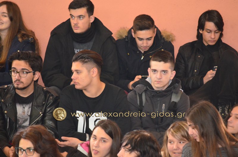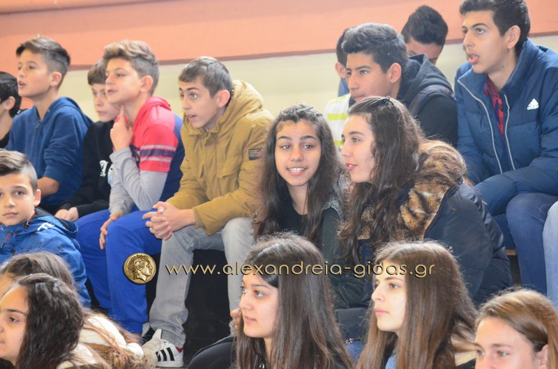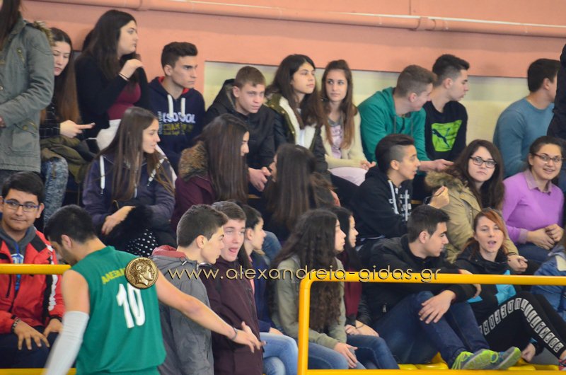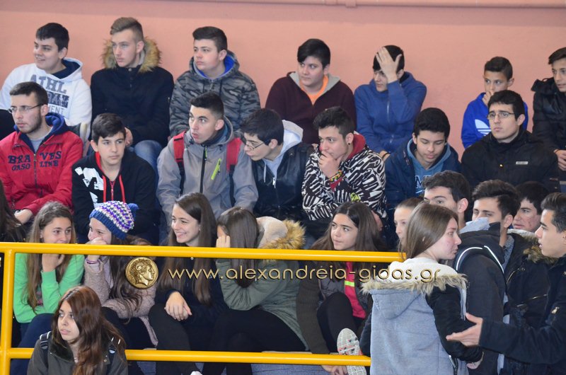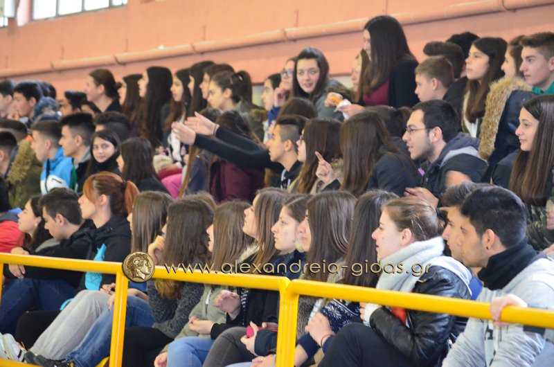 Η αναμέτρηση πραγματοποιήθηκε στο κλειστό του 2ου Γυμνασίου – Λυκείου Αλεξάνδρειας παρουσία αρκετών φιλάθλων του 2ου Λυκείου αλλά και Γυμνασίου Αλεξάνδρειας που στο κενό των μαθημάτων στήριξαν και χειροκρότησαν τις προσπάθειες και των δύο ομάδων.