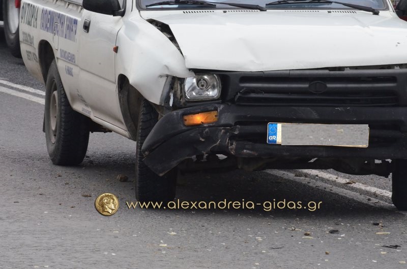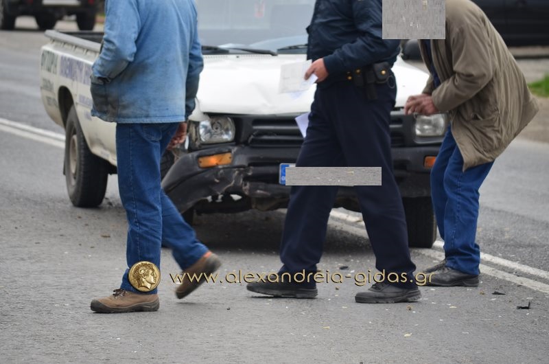 Τροχαίο ατύχημα σημειώθηκε το απόγευμα της Πέμπτης 18 Φεβρουαρίου στην είσοδο της Αλεξάνδρειας λίγο πριν από τις γραμμές του ΟΣΕ.