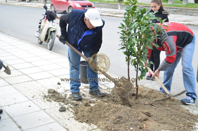 Η Δημοτική Κοινότητα Πλατέος του δήμου Αλεξάνδρειας διοργάνωσε δενδροφύτευση το πρωί του Σαββάτου 20 Φεβρουαρίου μπροστά στο πρώην δημαρχείου Πλατέος.