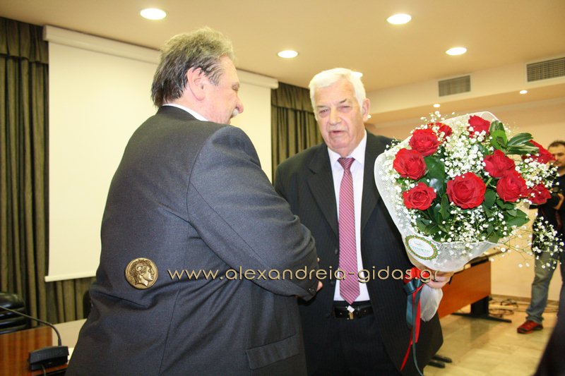Την βράβευσή του έκανε ο κ. Αλμπάνης Δημήτρης β’ αντιπρόεδρος επιμελητηρίου Ημαθίας, ενώ μια όμορφη ανθοδέσμη του χάρισε και ο συνονόματος εγγονός του.