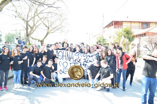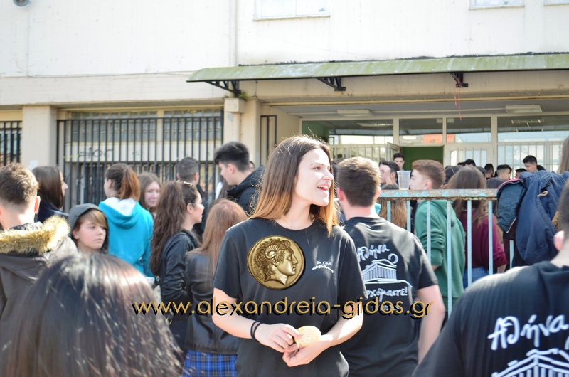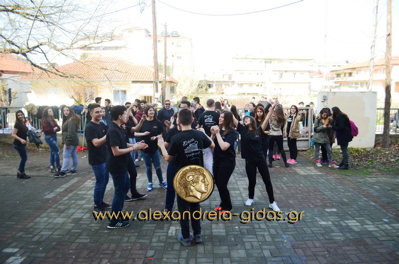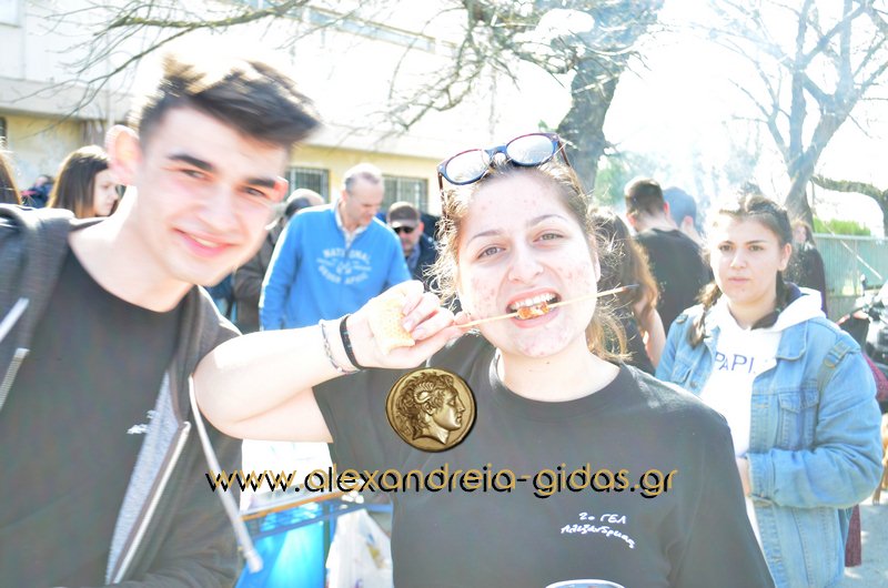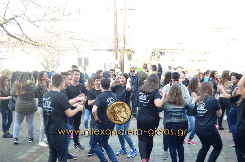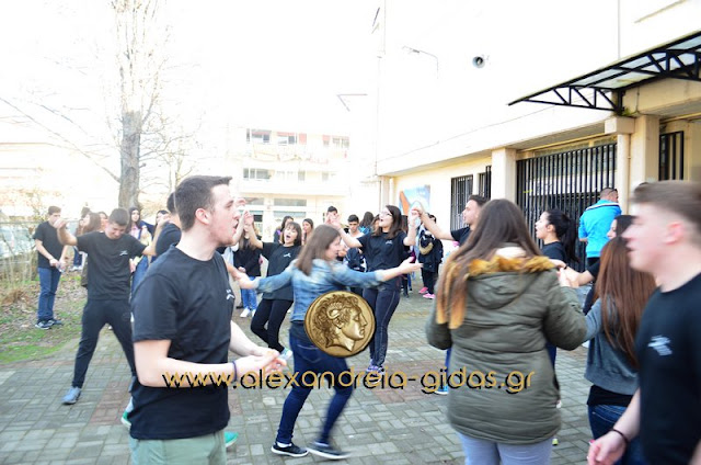 Οι μαθητές της Γ΄ Τάξης του 2ου Λυκείου Αλεξάνδρειας κρατώντας την παράδοση διοργάνωσαν πάρτυ έξω από το σχολείο το μεσημέρι της Τρίτης 23 Φεβρουαρίου.