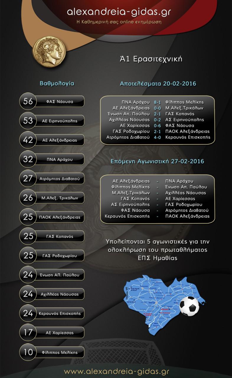 a1epsΣτις 15:30 συνεχίζεται σήμερα η 22η αγωνιστική στα ηλιόλουστα γήπεδα της Ημαθίας.