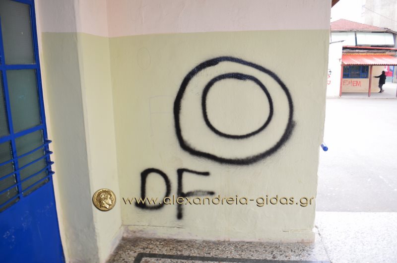 Σπασμένο παγκάκι, σπασμένα κλαδιά δέντρου, βάψιμο με σπρέι στους τοίχους, σπασμένες βρύσες και σπασμένος προβολέας κίνησης στην είσοδο του κτιρίου είναι μερικές από τις εικόνες που αντικρίζουν οι δάσκαλοι και μαθητές στην αυλή του 1ου – 5ου Δημοτικών Σχολείων Αλεξάνδρειας.