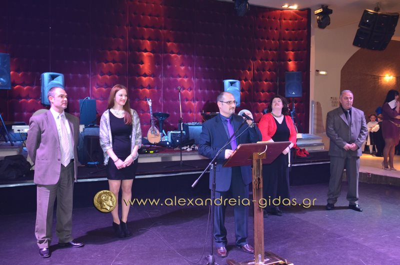 Πριν την εκδήλωση βραβεύτηκαν τα ιδρυτικά μέλη του συλλόγου ενώ σύντομο χαιρετισμό απηύθυναν ο δήμαρχος Αλεξάνδρειας Παναγιώτης Γκυρίνης και ο αντιπεριφερειάρχης Ημαθίας Κώστας Καλαϊτζίδης.