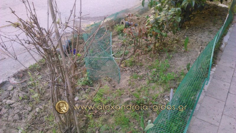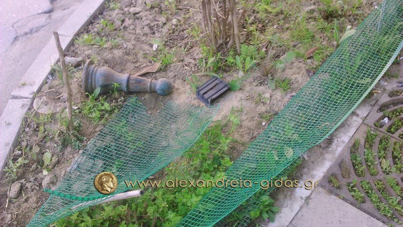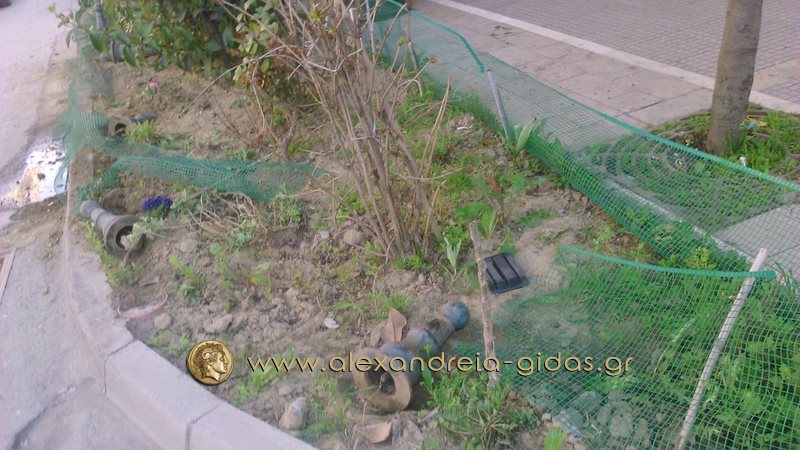 Άγνωστο ποιος και πως έσπασε και τα κολονάκια και τον χώρο των λουλουδιών που είχαν δημιουργήσει οι καταστηματάρχες στο σημείο.