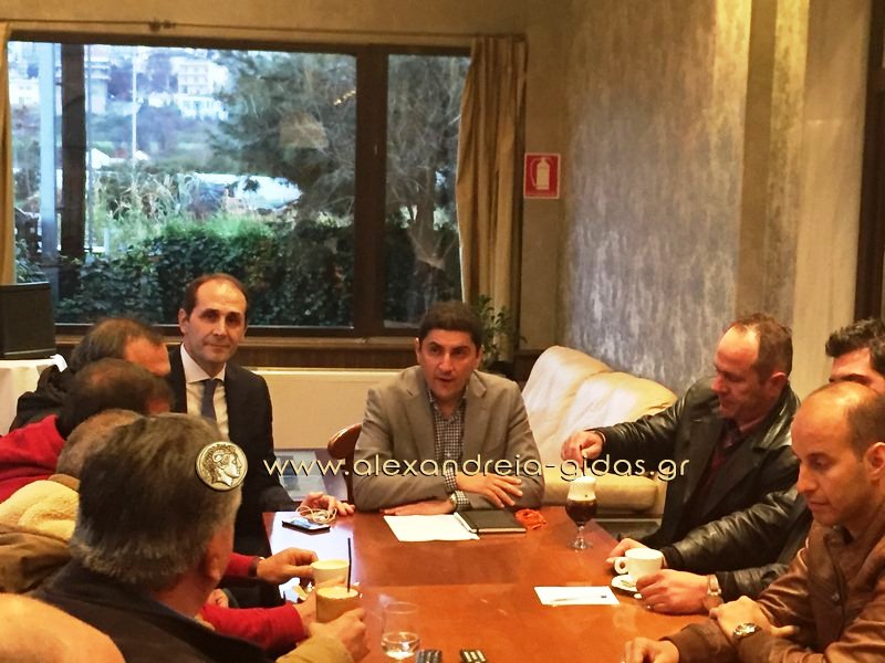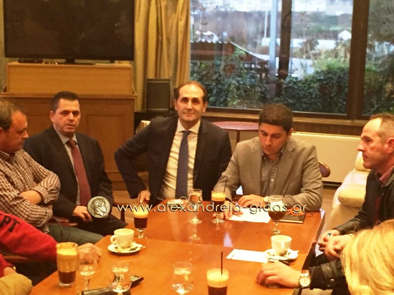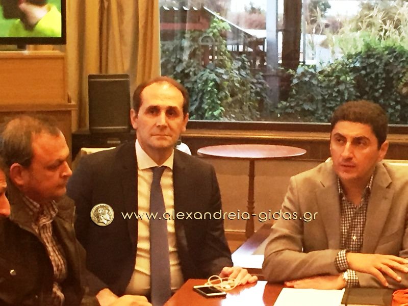 Λίγο πριν την ομιλία του στο ΑΙΓΕΣ στη Βέροια, ο Λευτέρης Αυγενάκης συναντήθηκε με τους αγρότες της Ημαθίας παρουσία του βουλευτή Ημαθίας Απόστολο Βεσυρόπουλου και του αντιπεριφερειάρχη Ημαθίας Κώστα Καλαϊτζίδη.