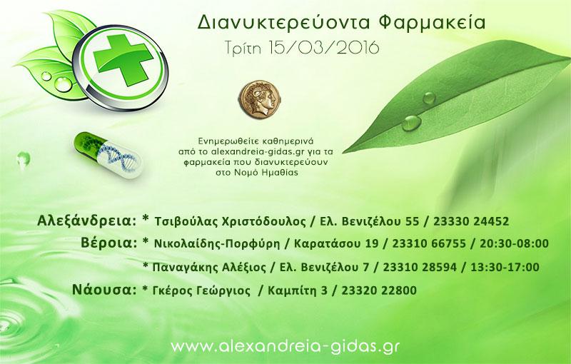 ΤΟΠΙΚΑ 15 Μαρτίου, 2016 posted by admin Share Διανυκτερεύοντα φαρμακεία Ημαθίας Τρίτη 15 Μαρτίου Αλεξάνδρεια: Αφήστε μια απάντηση Ακύρωση απάντησηςΗ ηλ. διεύθυνση σας δεν δημοσιεύεται. Τα υποχρεωτικά πεδία σημειώνονται με *Σχόλιο * Όνομα Email Ιστότοπος Αποθήκευσε το όνομά μου, email, και τον ιστότοπο μου σε αυτόν τον πλοηγό για την επόμενη φορά που θα σχολιάσω.