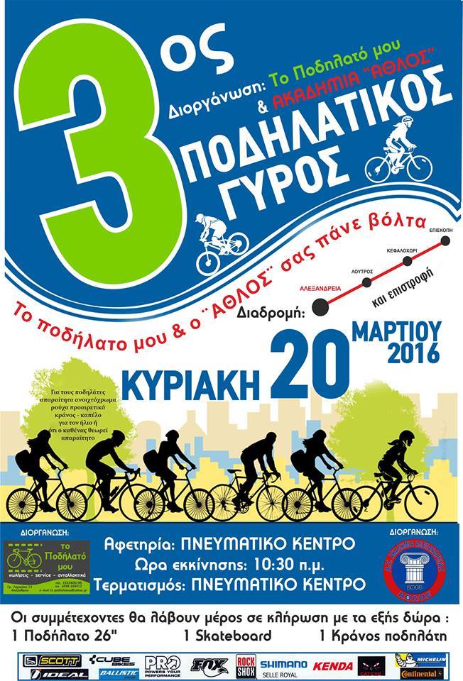 bikes1Το κατάστημα “TΟ ΠΟΔΗΛΑΤΟ ΜΟΥ” και η ακαδημία “ΑΘΛΟΣ” διοργανώνουν στις 20 Μαρτίου 2016 ποδηλατικό γύρο.
