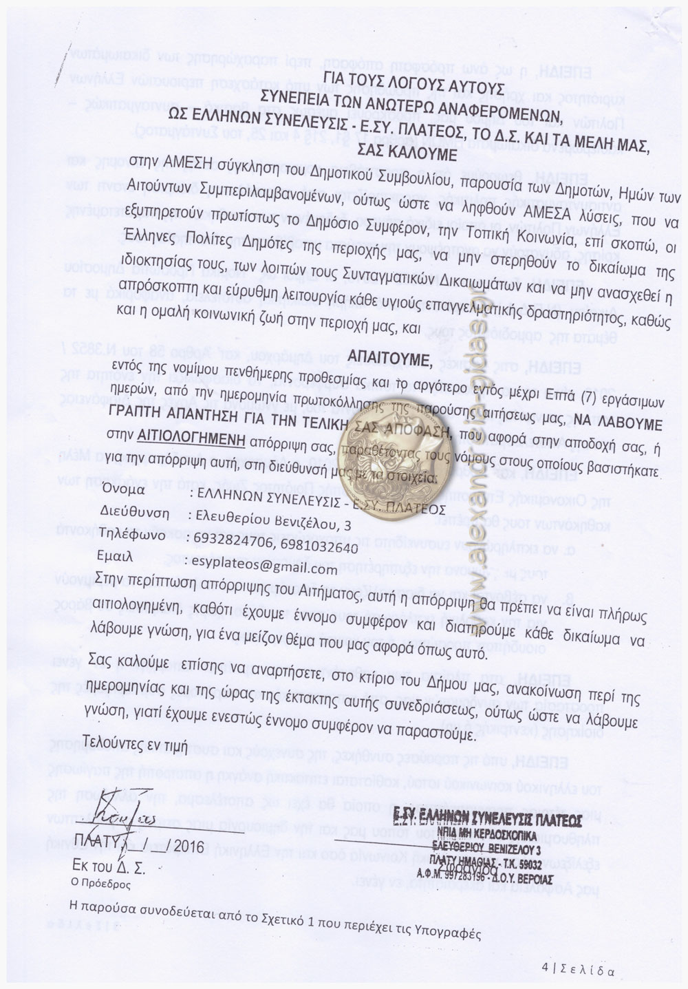 Με το έγγραφο ζητήθηκε να συνεδριάσει το δημοτικό συμβούλιο Αλεξάνδρειας για το θέμα της στέγασης των μεταναστών στην περιοχή της Αλεξάνδρειας.