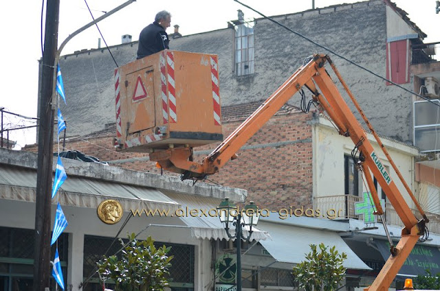 Τον σημαιοστολισμό της πόλης ξεκίνησαν οι υπάλληλοι του δήμου Αλεξάνδρειας το πρωί της Τρίτης 22 Μαρτίου με αφορμή την παρέλαση της 25ης Μαρτίου.