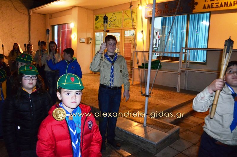 scouts23Όπως κάθε χρόνο έτσι και φέτος οι Πρόσκοποι Αλεξάνδρειας πριν την παρέλαση της 25ης Μαρτίου διοργάνωσαν την καθιερωμένη Λαμπαδηδρομία στην πόλη μας τιμώντας τους ήρωες του 1821.