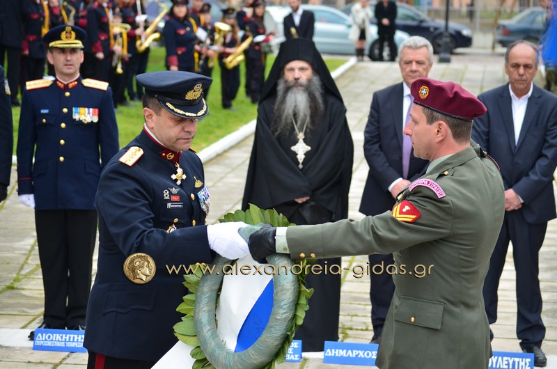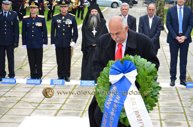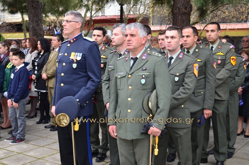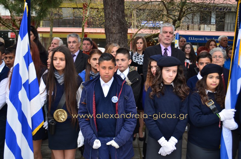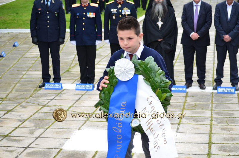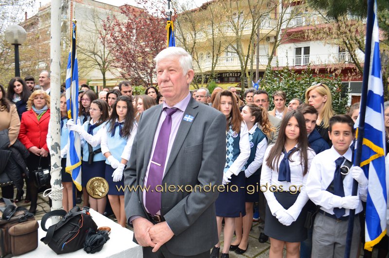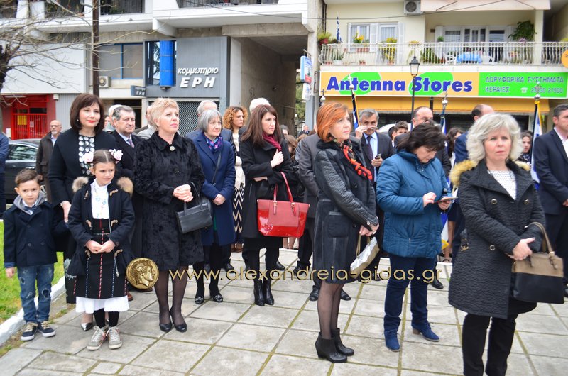 Με κάθε επισημότητα και λαμπρότητα πραγματοποιήθηκε το πρωί της Παρασκευής 25ης Μαρτίου η κατάθεση στεφάνων στο άγαλμα του Ηρώου στην Αλεξάνδρεια.