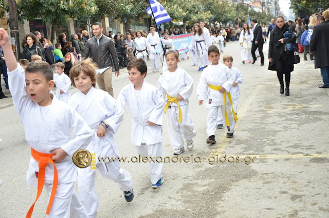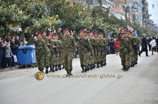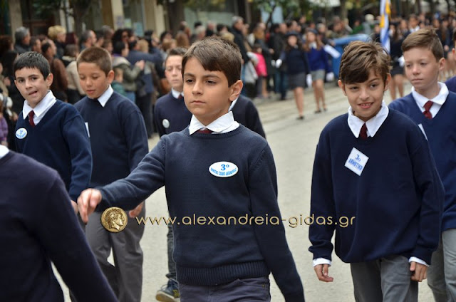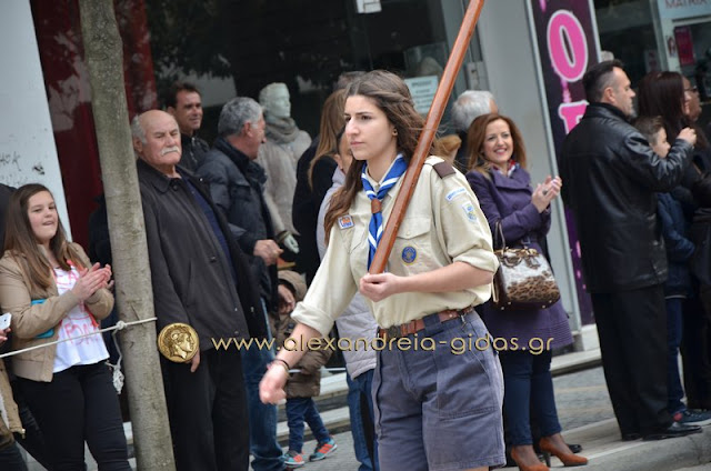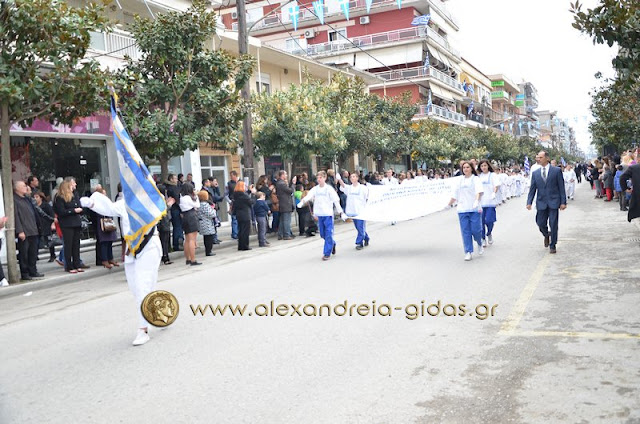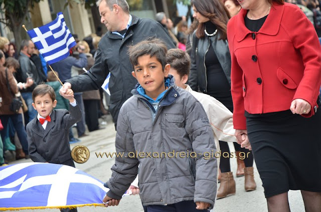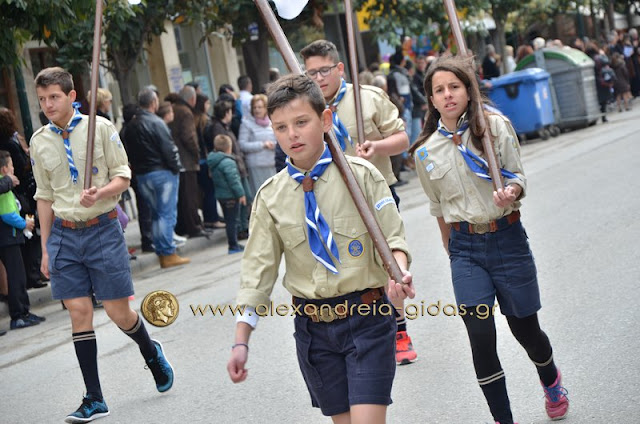 Σχολεία, πολιτιστικοί και αθλητικοί σύλλογοι, οι πρόσκοποι Αλεξάνδρειας και ο στρατός παρέλασαν στην Βετσοπούλου κερδίζοντας το θερμό χειροκρότημα των πολιτών που κατέκλεισαν το κέντρο της Αλεξάνδρειας.
