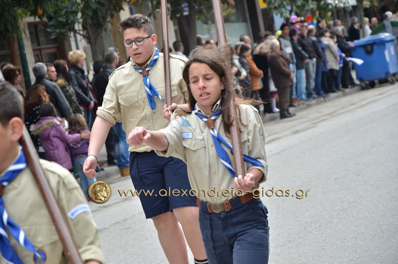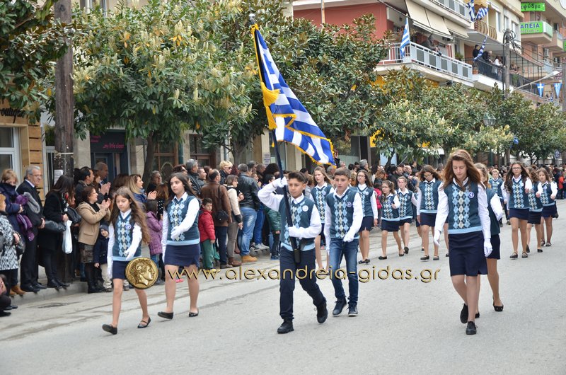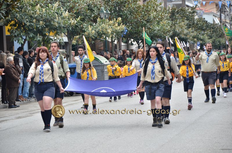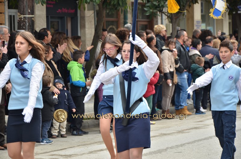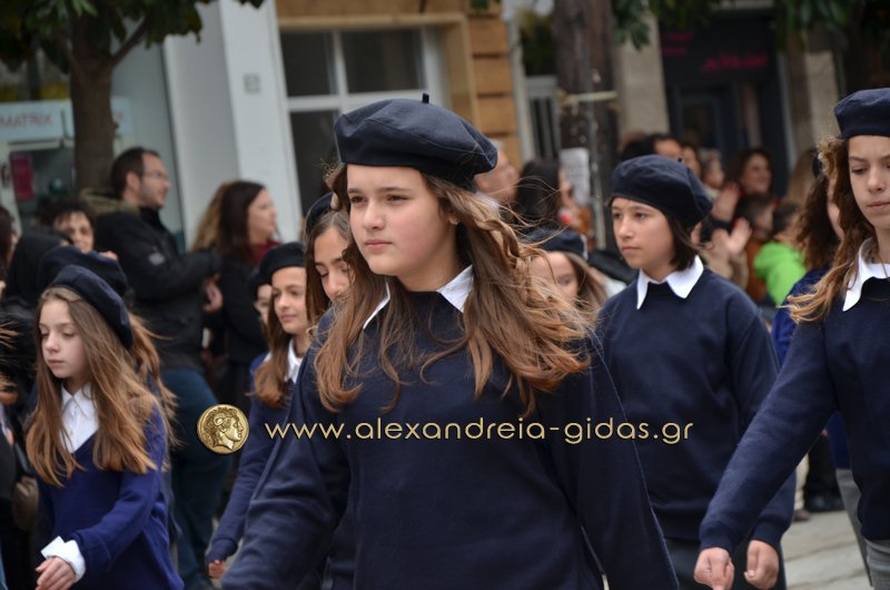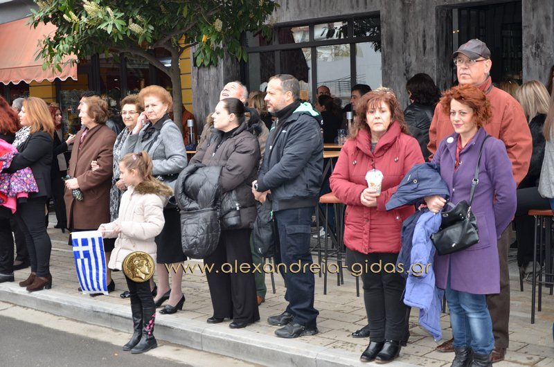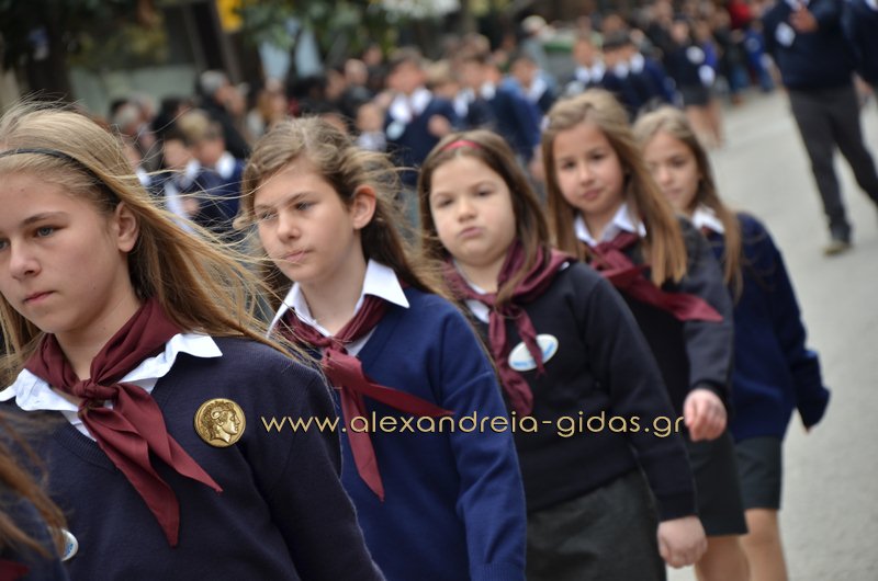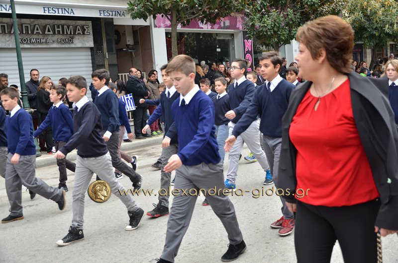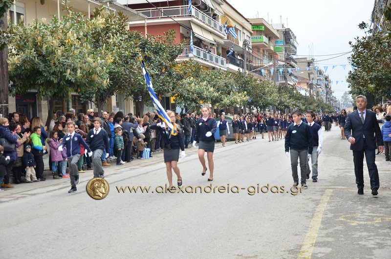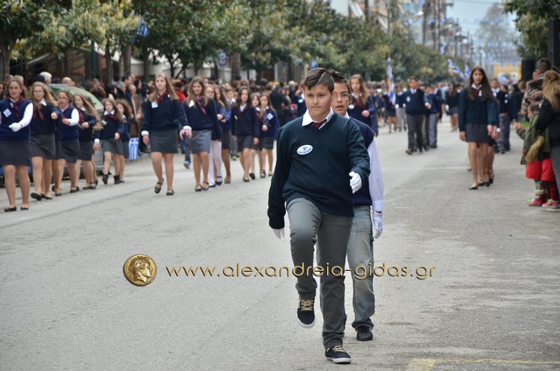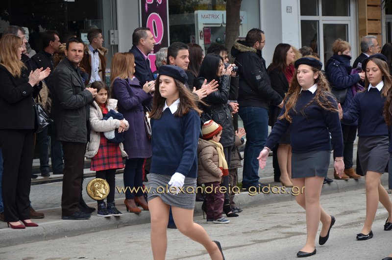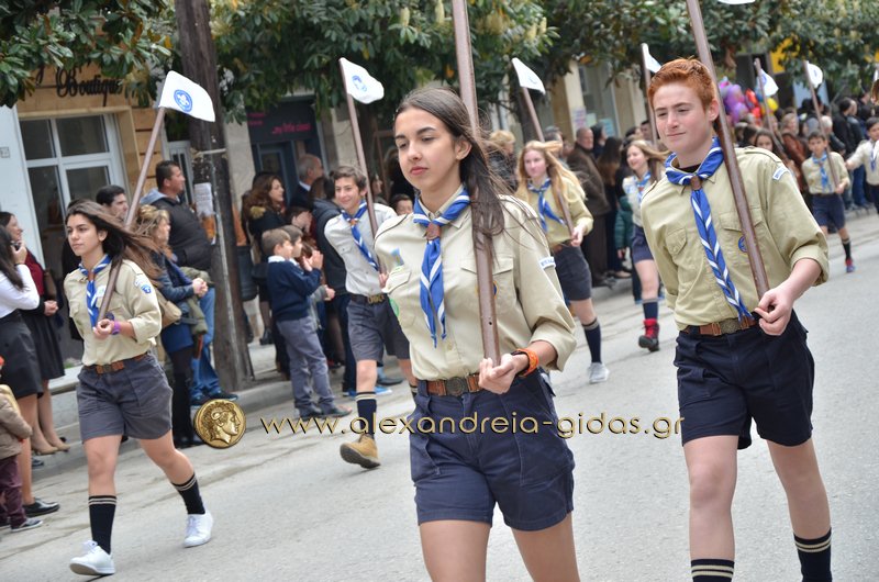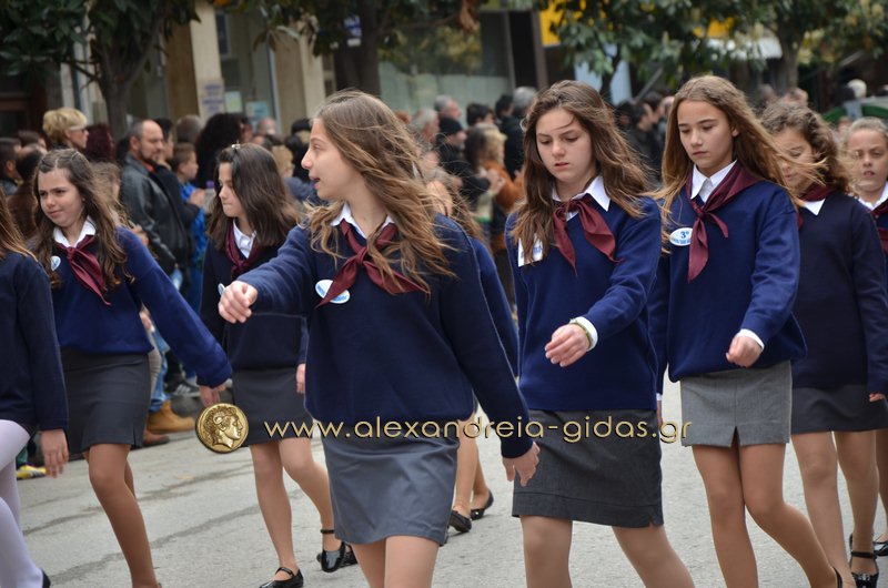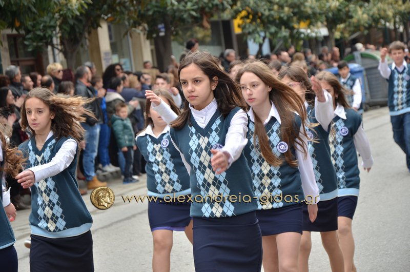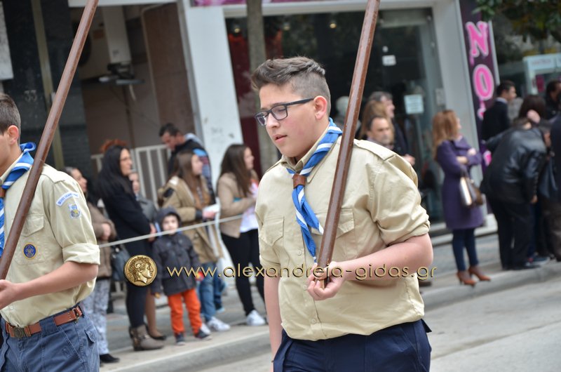 Σχολεία, πολιτιστικοί και αθλητικοί σύλλογοι, οι πρόσκοποι Αλεξάνδρειας και ο στρατός παρέλασαν στην Βετσοπούλου κερδίζοντας το θερμό χειροκρότημα των πολιτών που κατέκλεισαν το κέντρο της Αλεξάνδρειας.