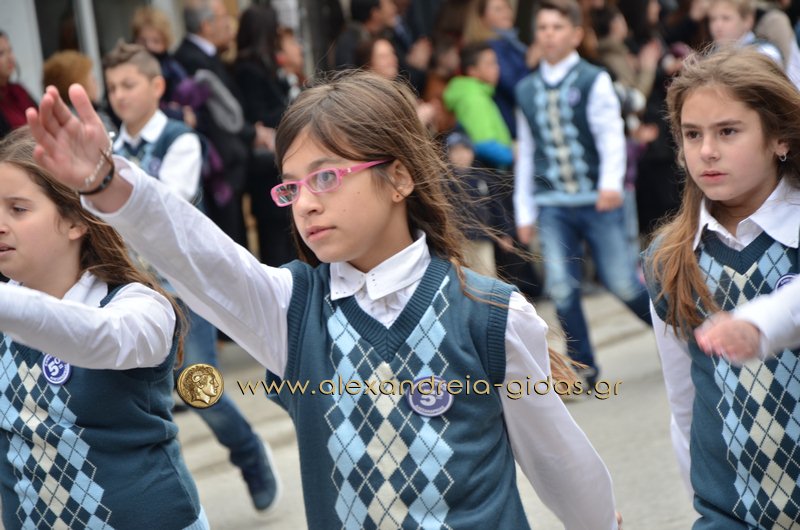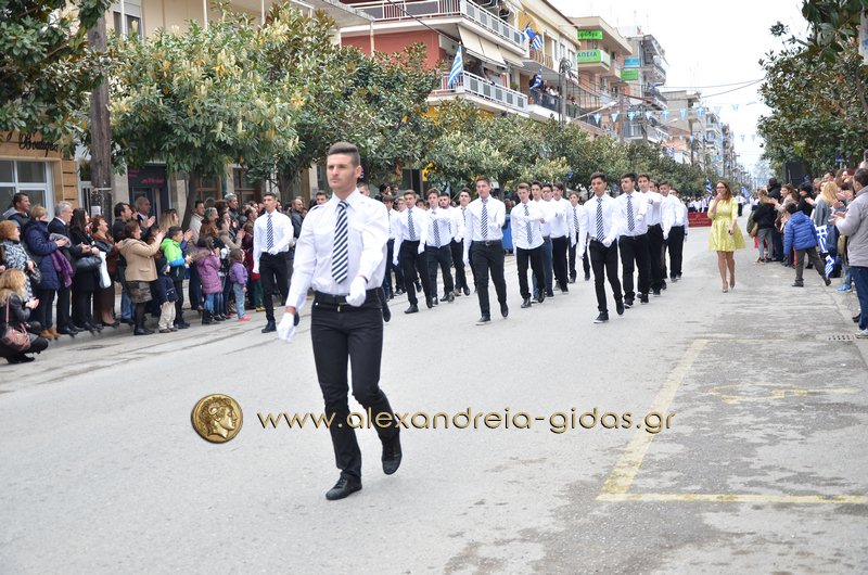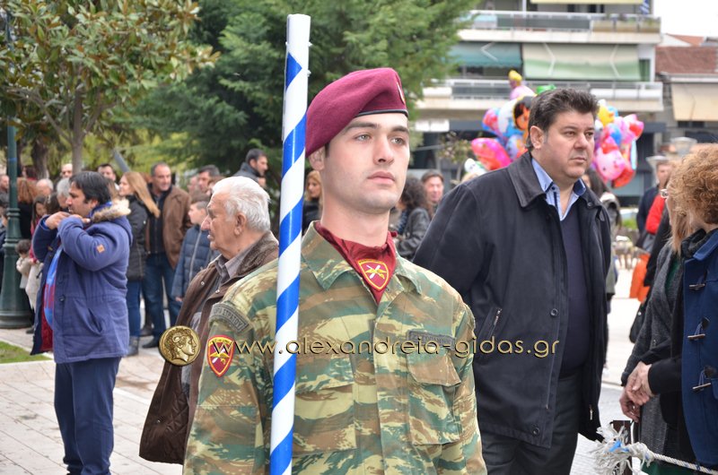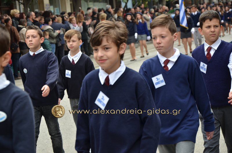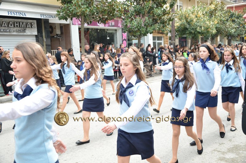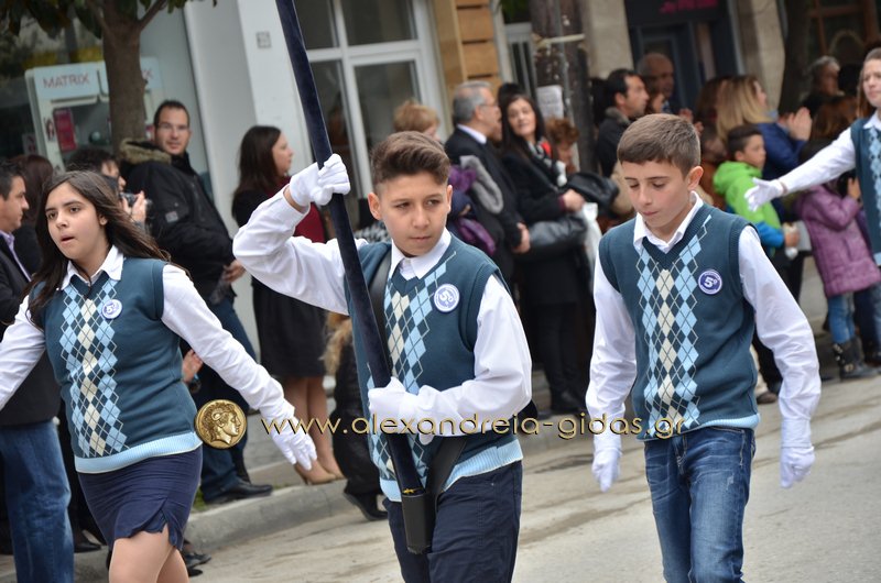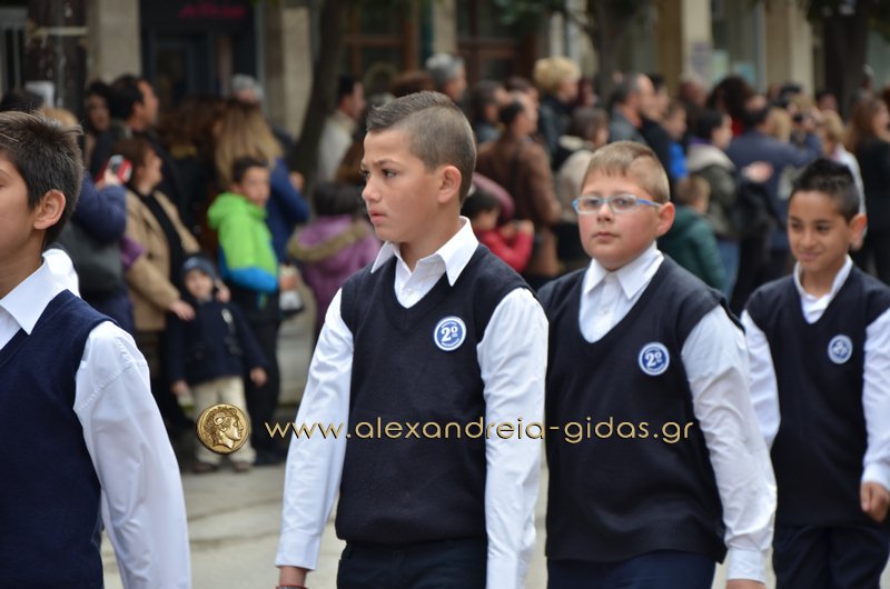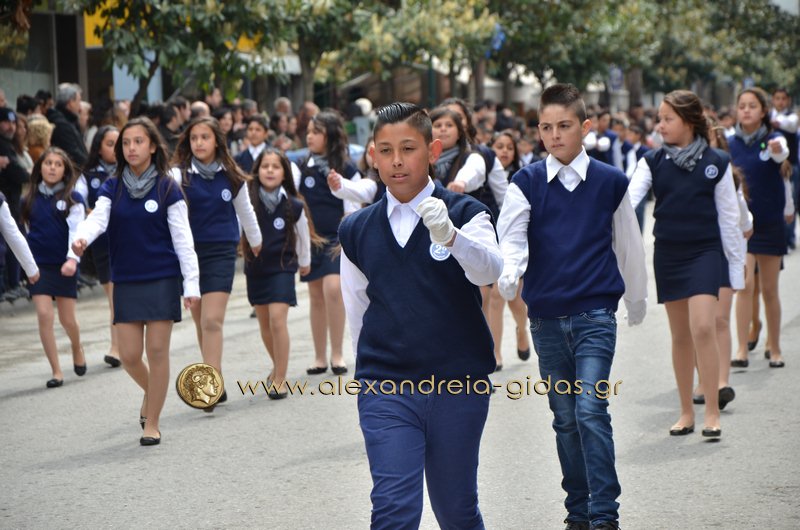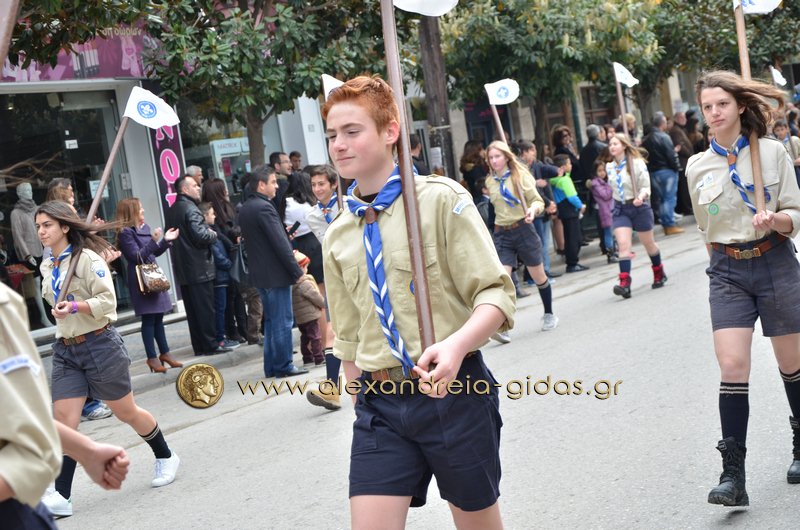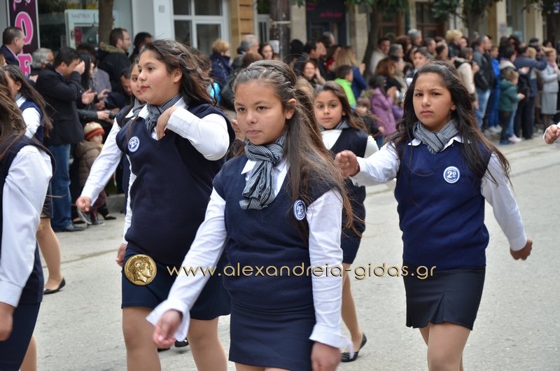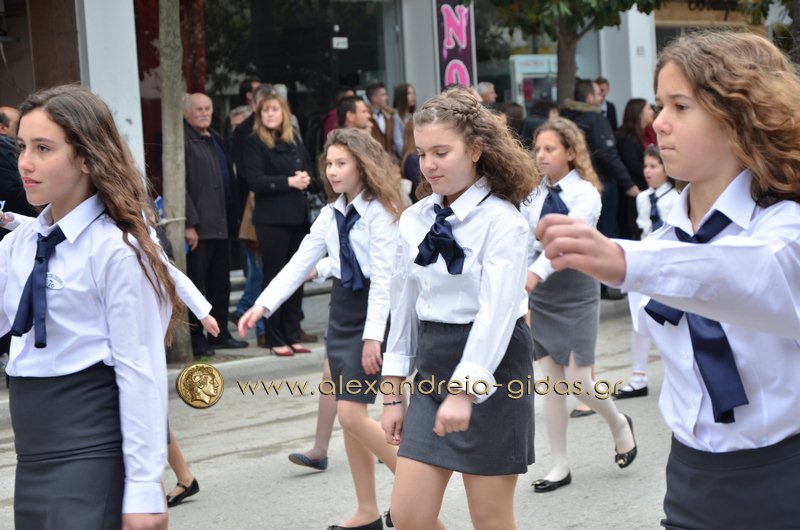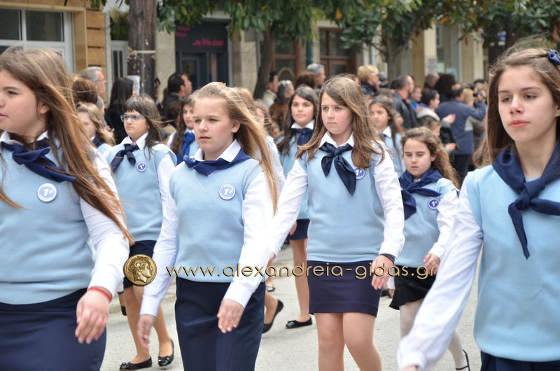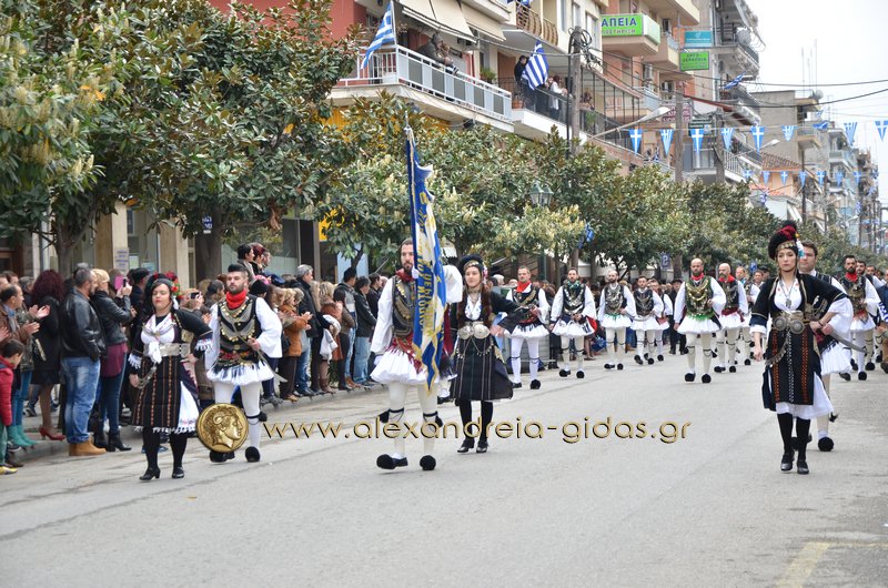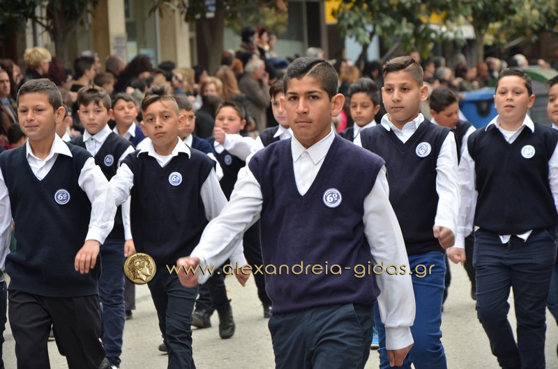 Σχολεία, πολιτιστικοί και αθλητικοί σύλλογοι, οι πρόσκοποι Αλεξάνδρειας και ο στρατός παρέλασαν στην Βετσοπούλου κερδίζοντας το θερμό χειροκρότημα των πολιτών που κατέκλεισαν το κέντρο της Αλεξάνδρειας.