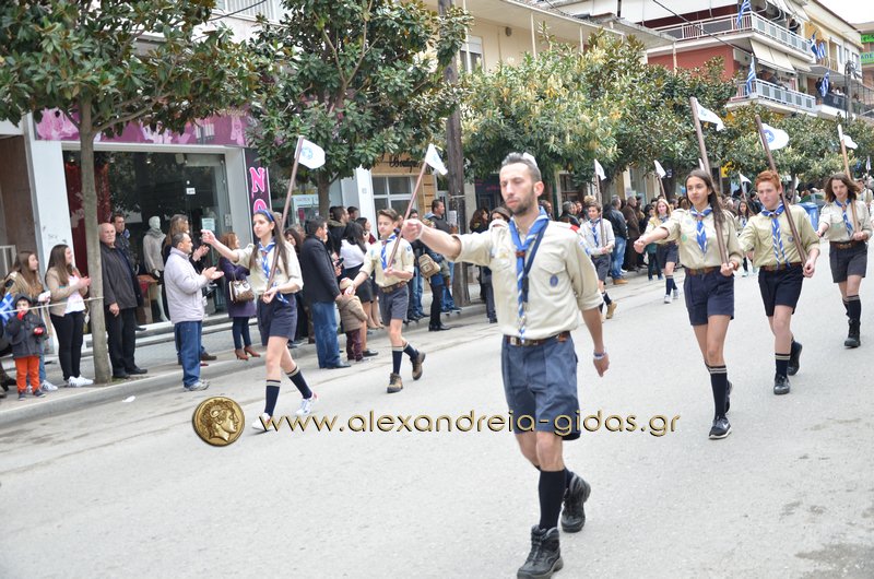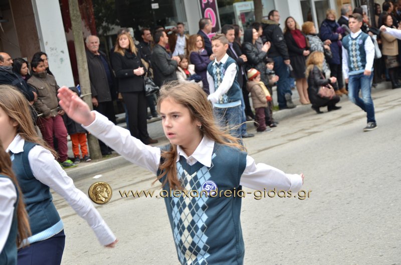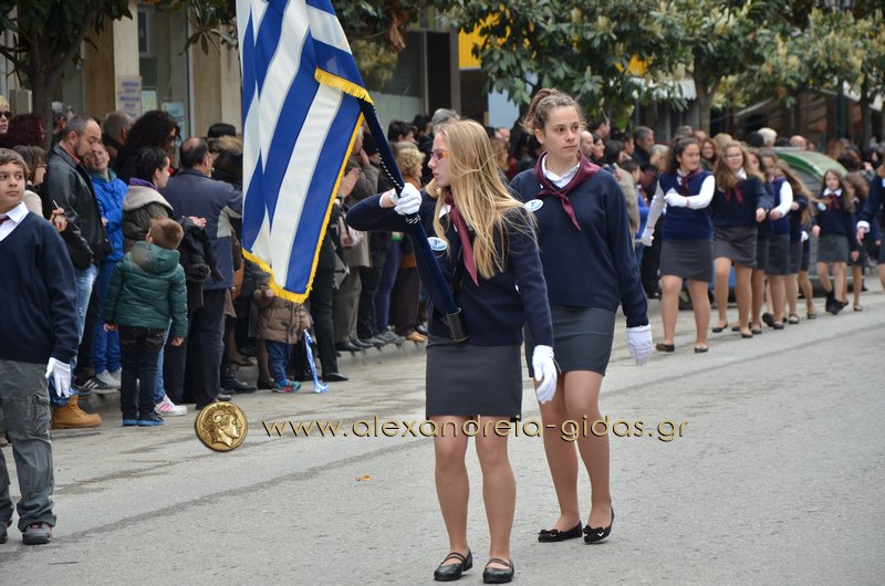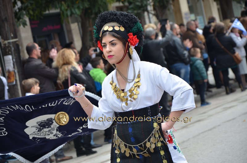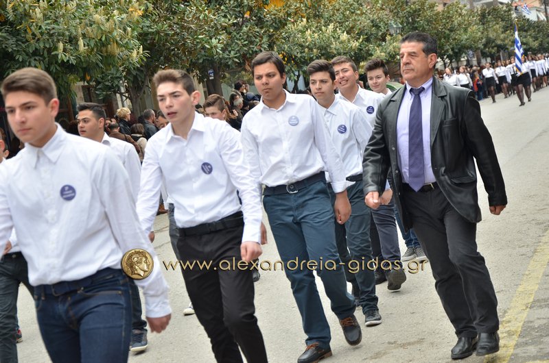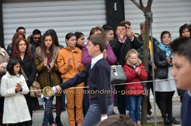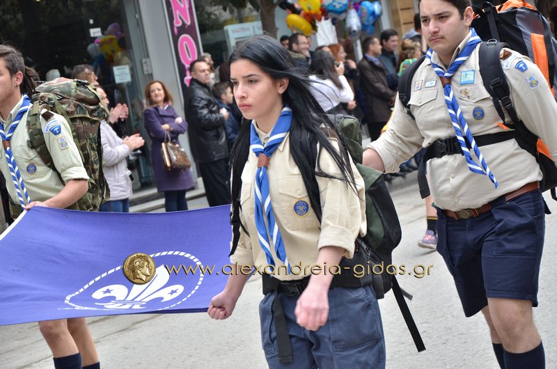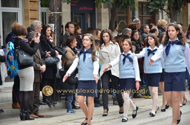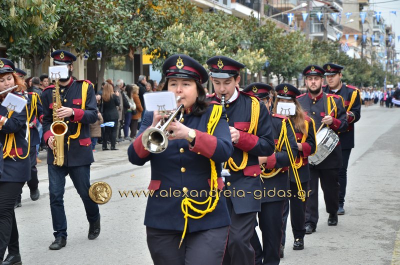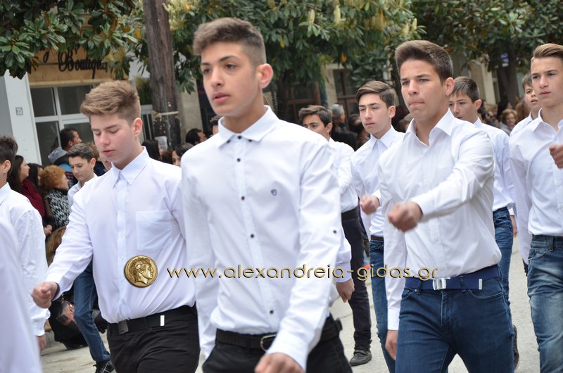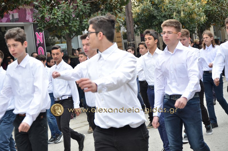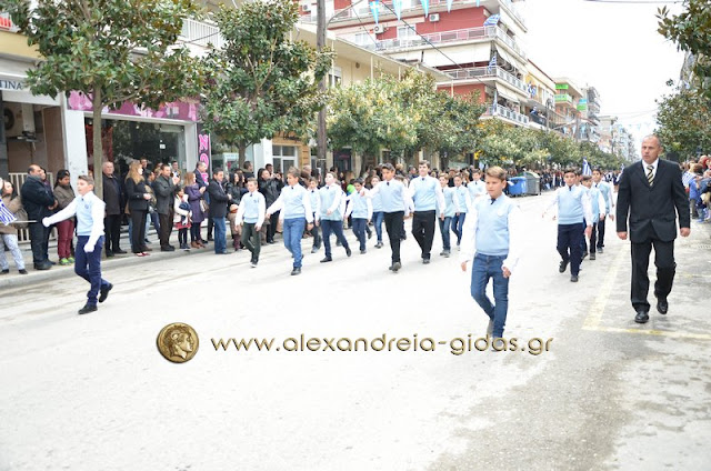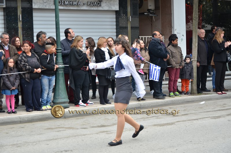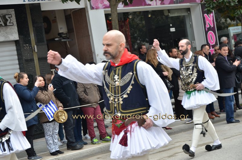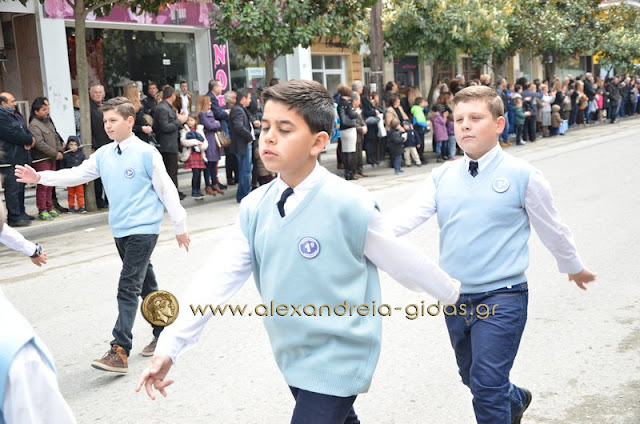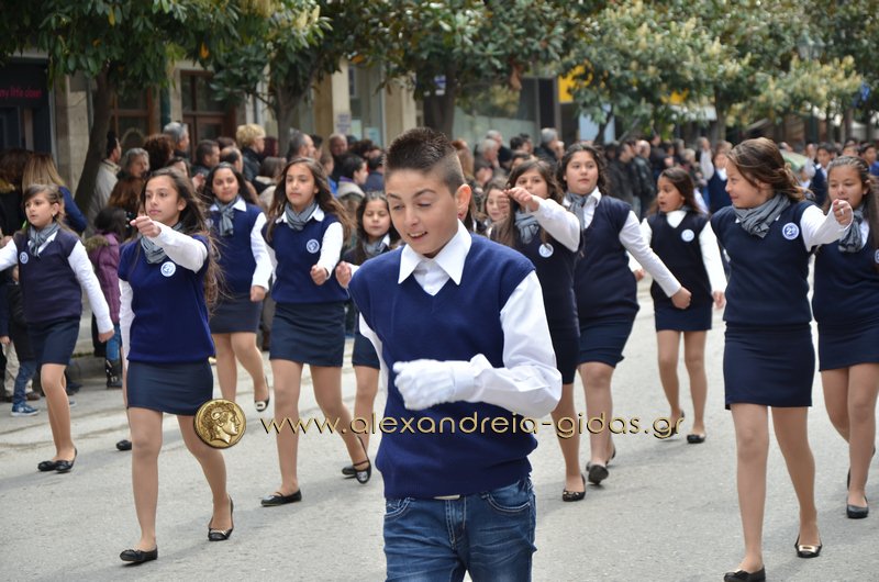 Σχολεία, πολιτιστικοί και αθλητικοί σύλλογοι, οι πρόσκοποι Αλεξάνδρειας και ο στρατός παρέλασαν στην Βετσοπούλου κερδίζοντας το θερμό χειροκρότημα των πολιτών που κατέκλεισαν το κέντρο της Αλεξάνδρειας.