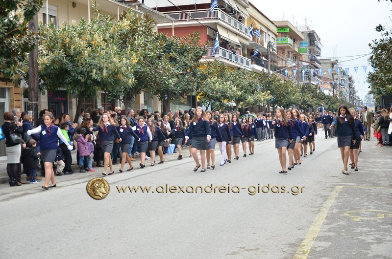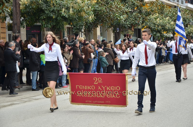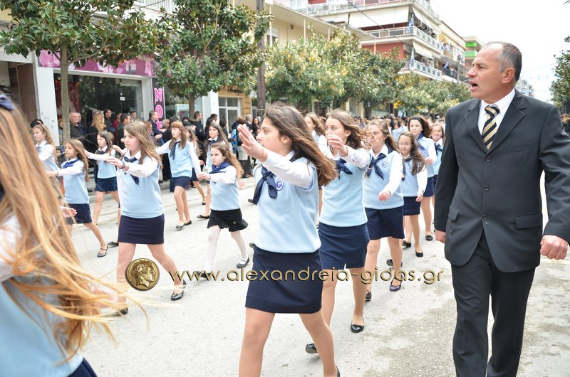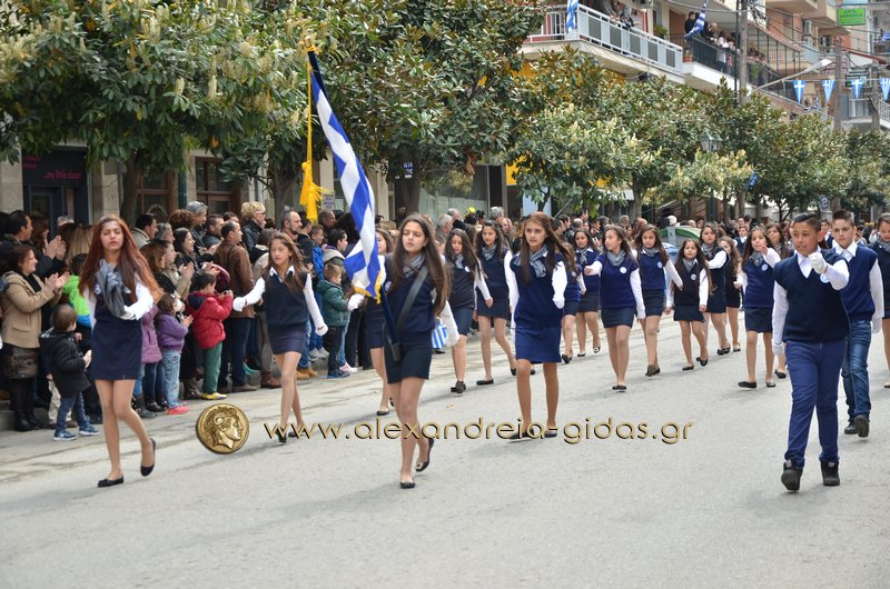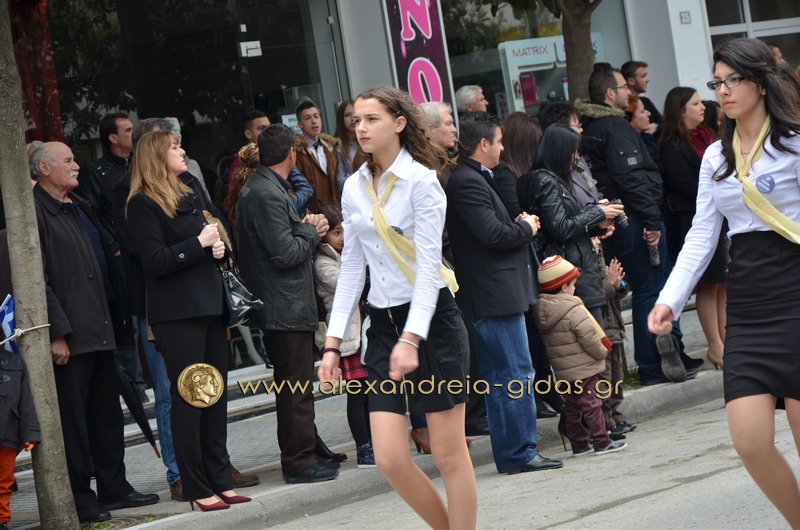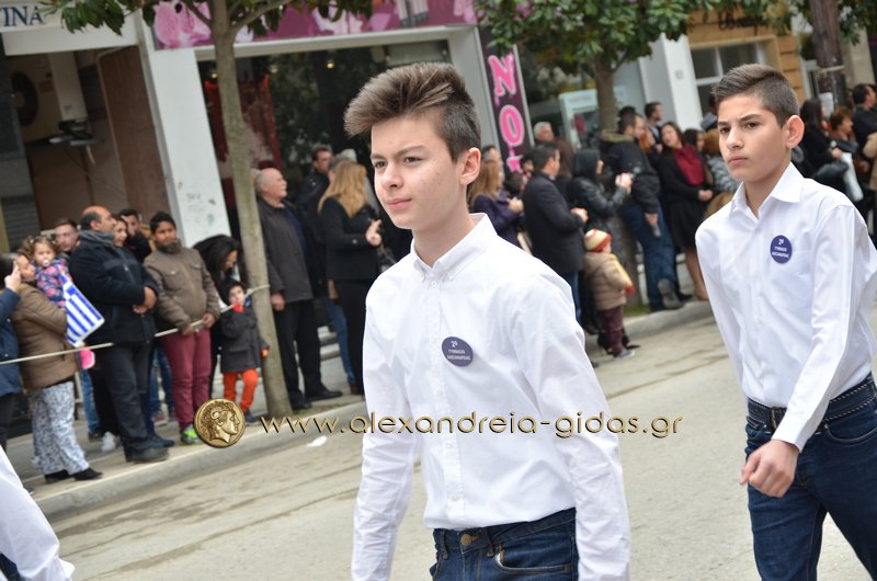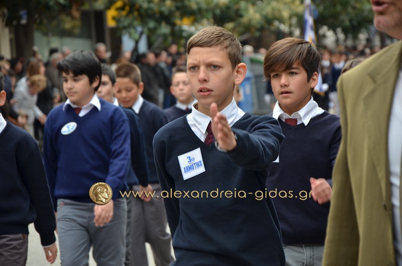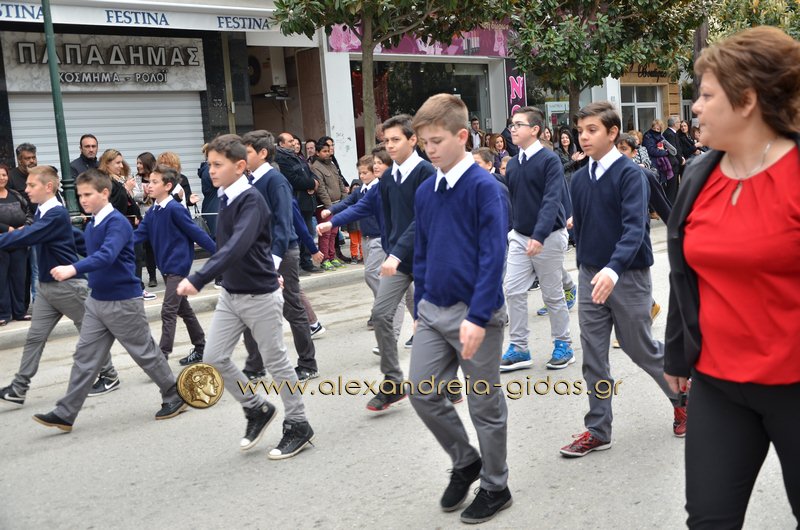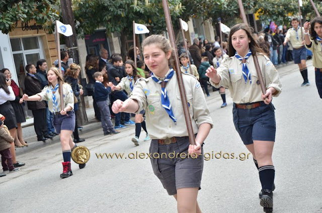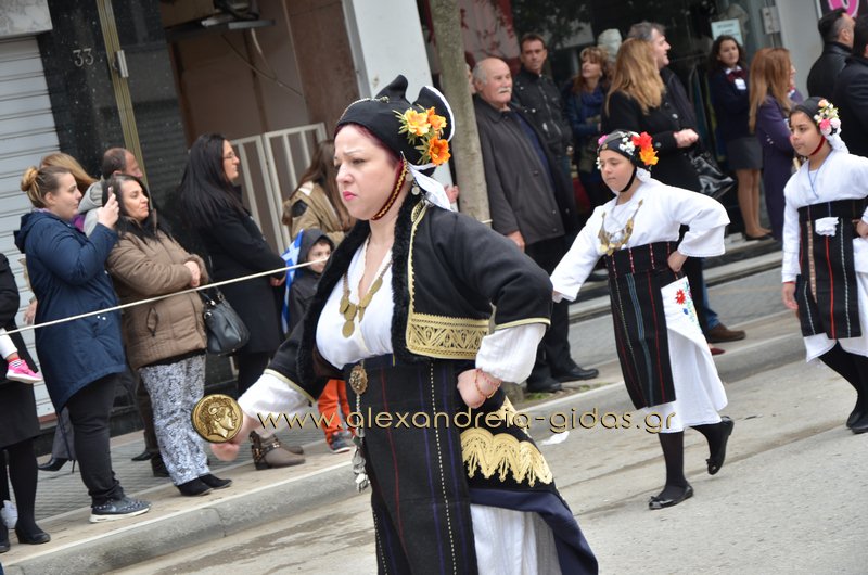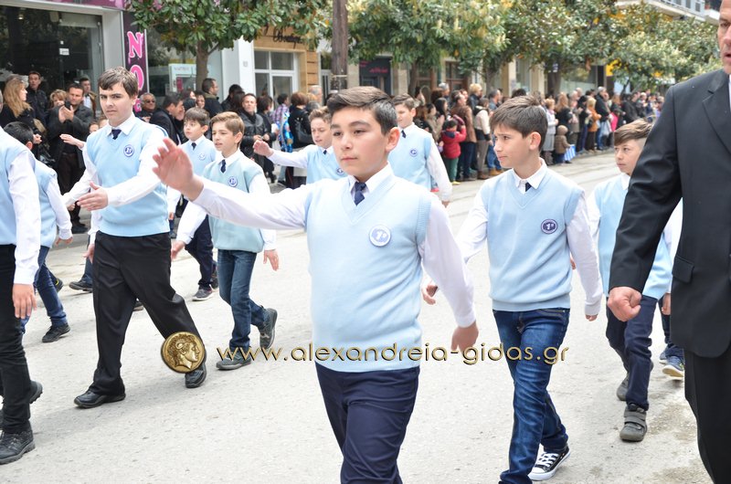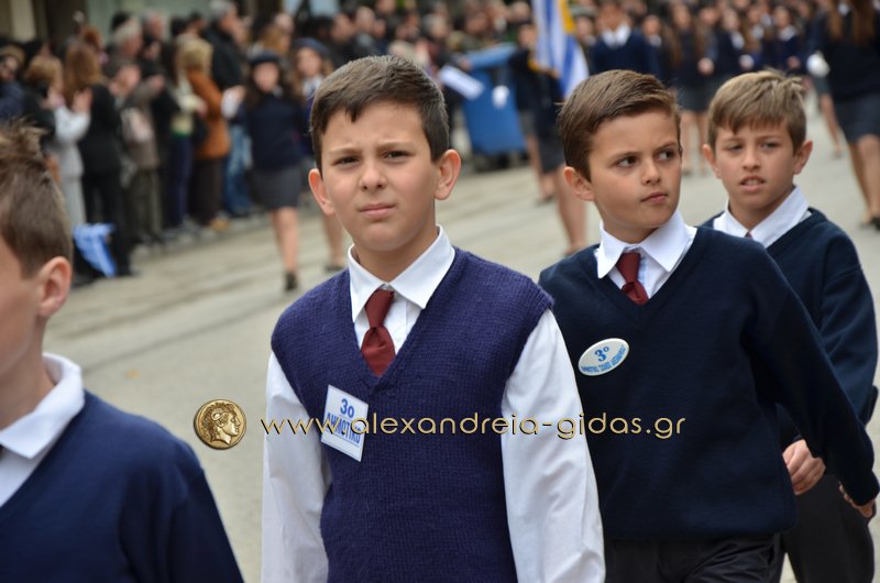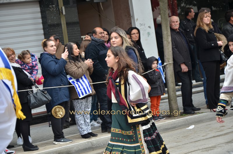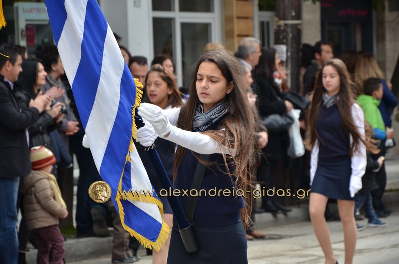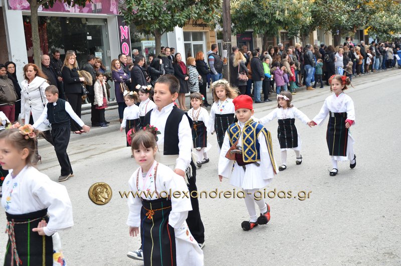 Σχολεία, πολιτιστικοί και αθλητικοί σύλλογοι, οι πρόσκοποι Αλεξάνδρειας και ο στρατός παρέλασαν στην Βετσοπούλου κερδίζοντας το θερμό χειροκρότημα των πολιτών που κατέκλεισαν το κέντρο της Αλεξάνδρειας.