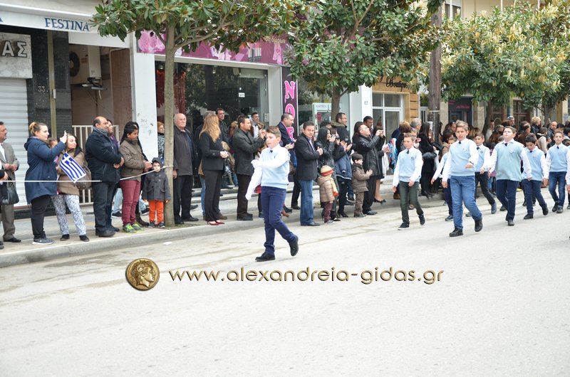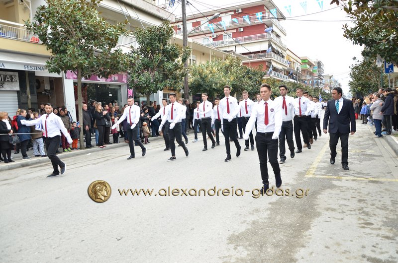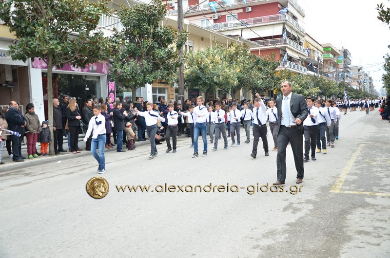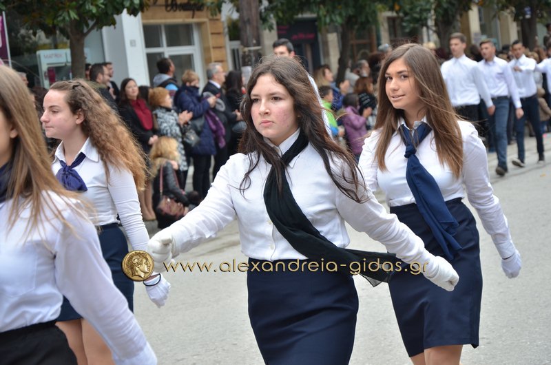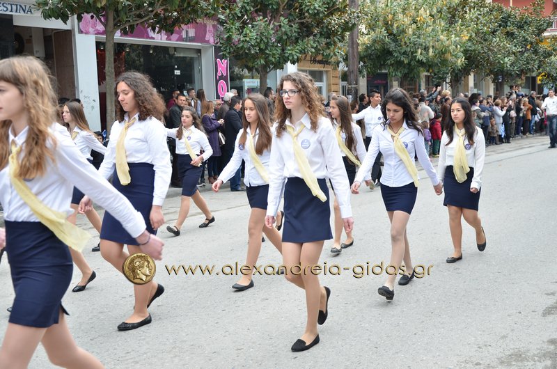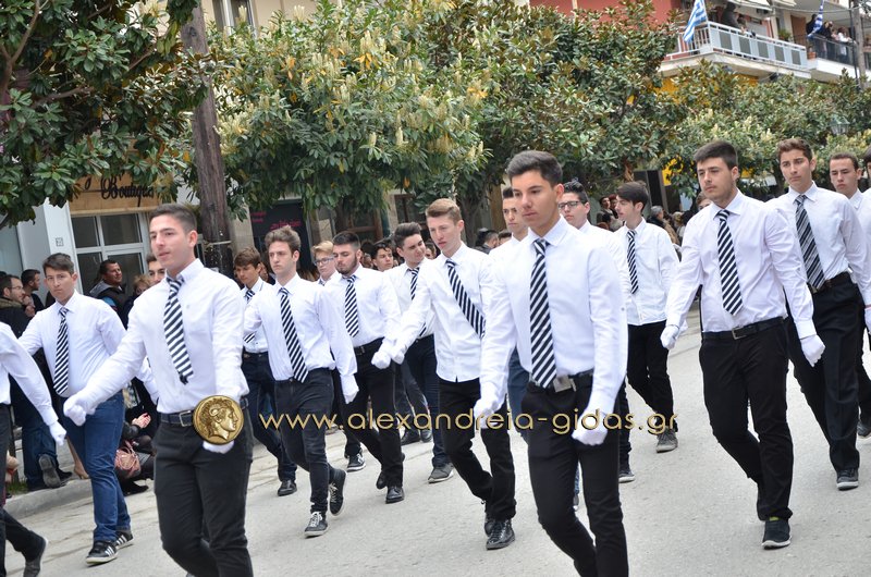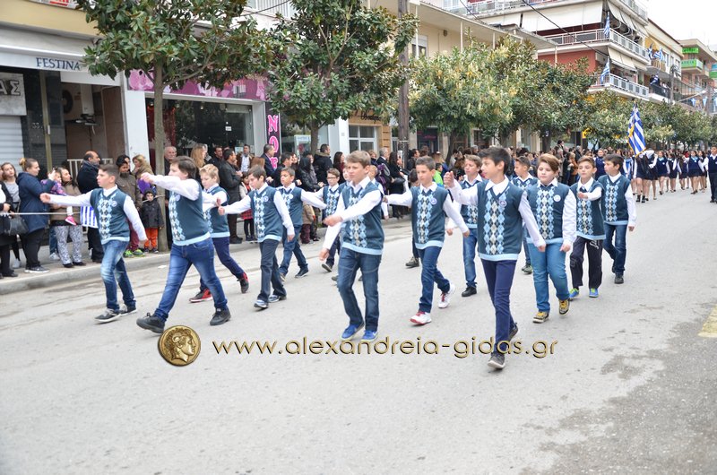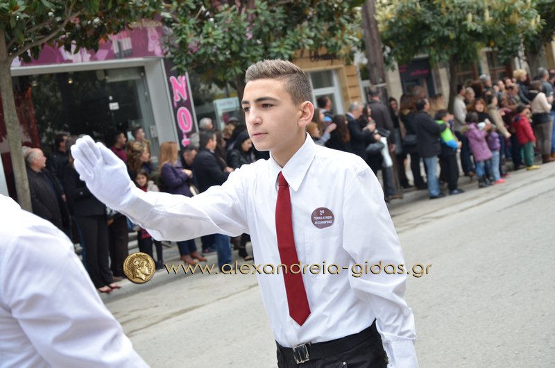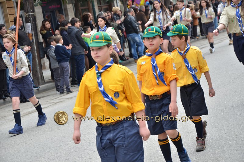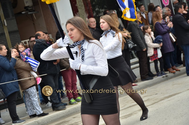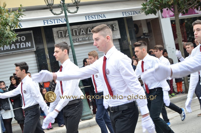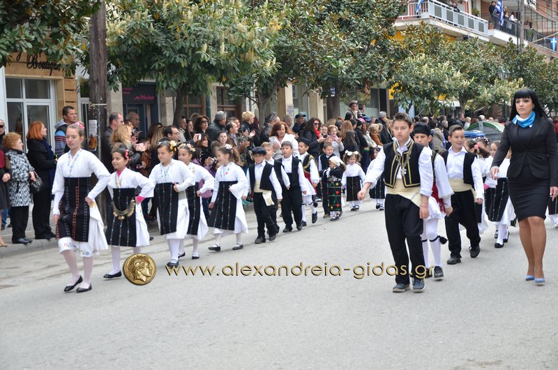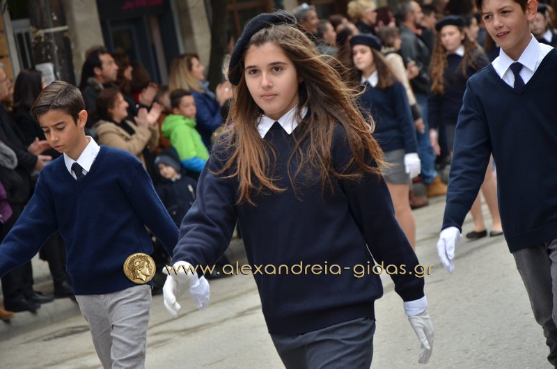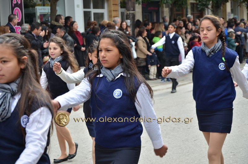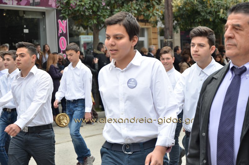 Σχολεία, πολιτιστικοί και αθλητικοί σύλλογοι, οι πρόσκοποι Αλεξάνδρειας και ο στρατός παρέλασαν στην Βετσοπούλου κερδίζοντας το θερμό χειροκρότημα των πολιτών που κατέκλεισαν το κέντρο της Αλεξάνδρειας.