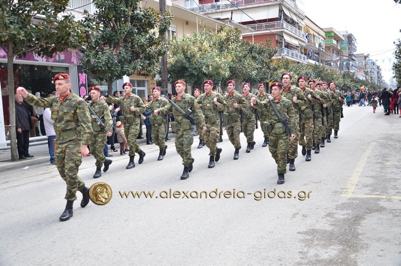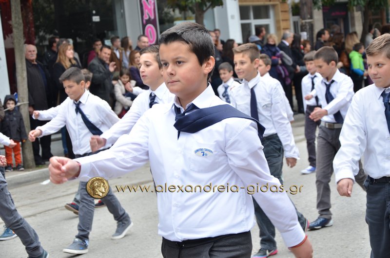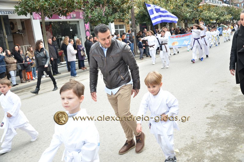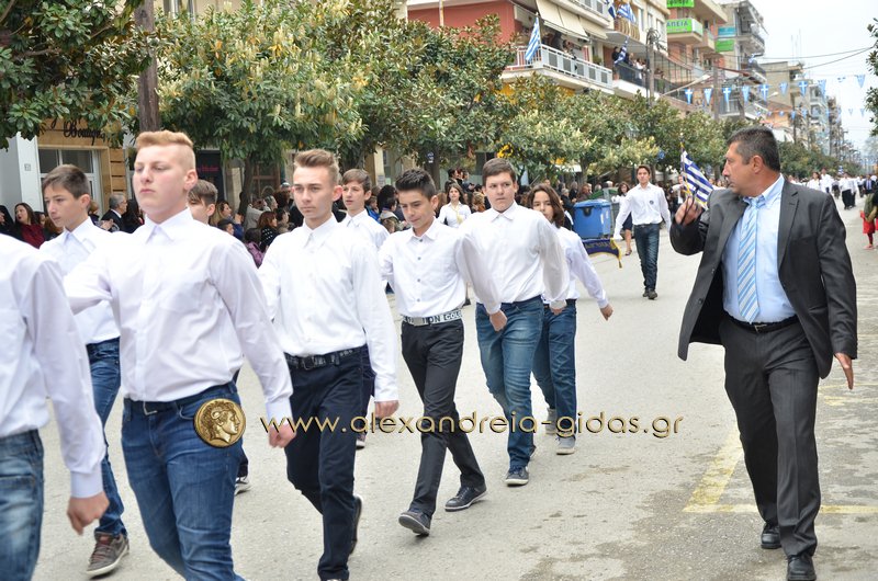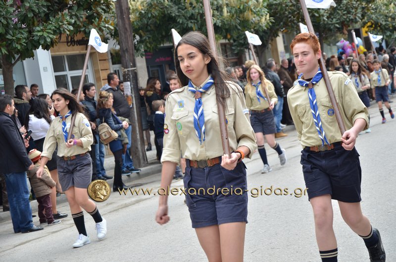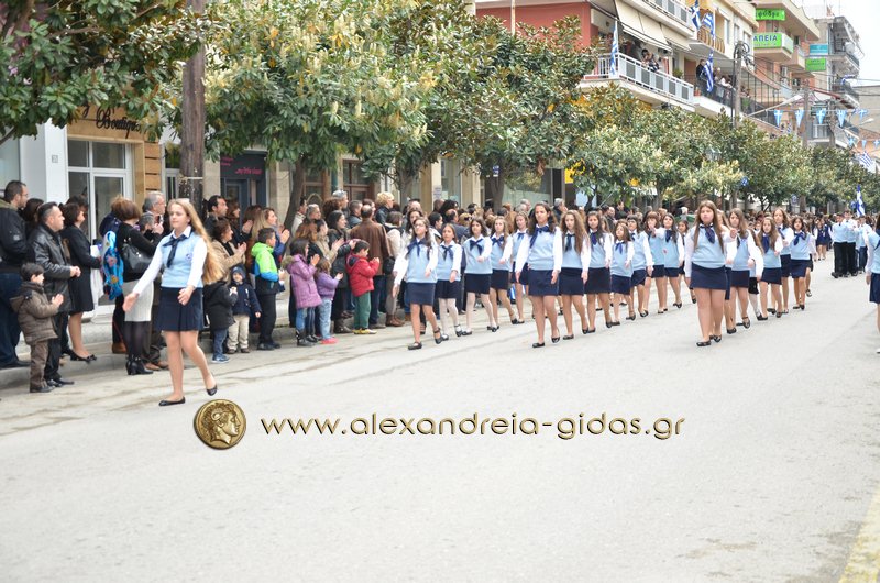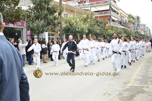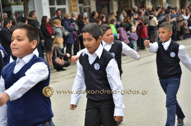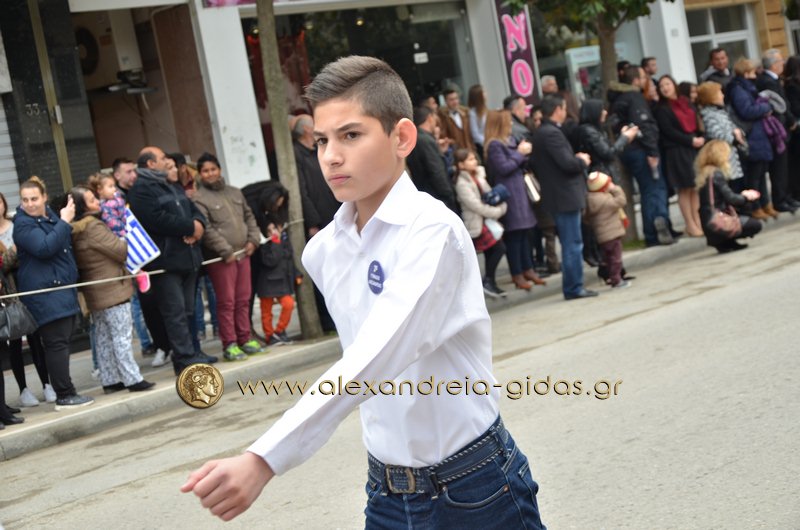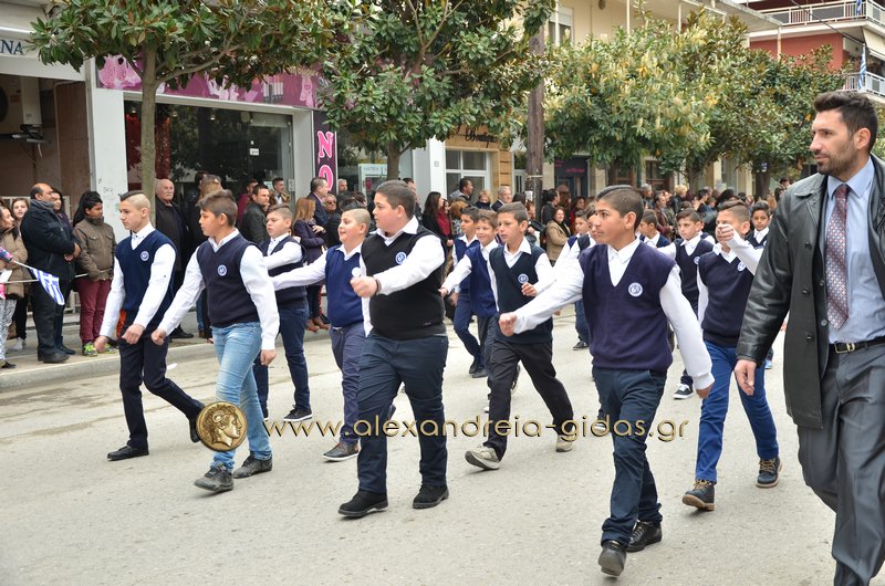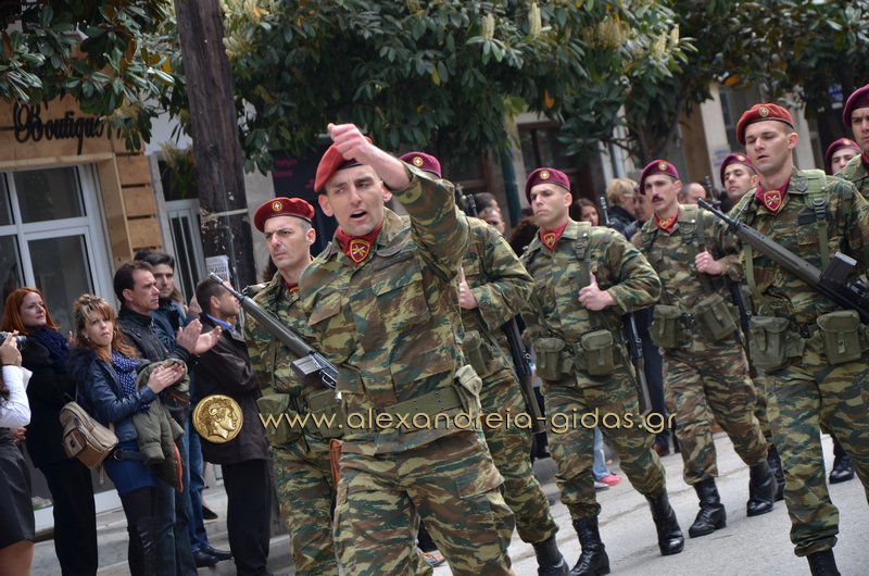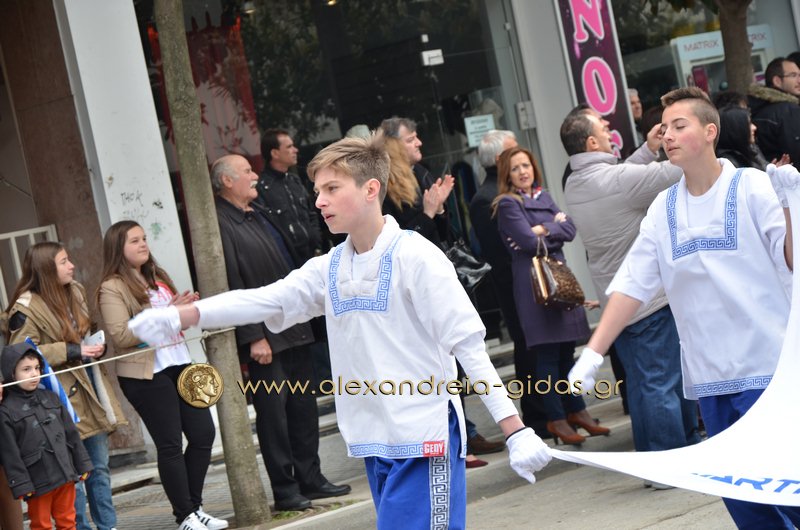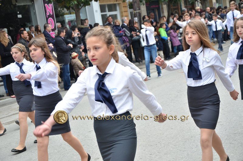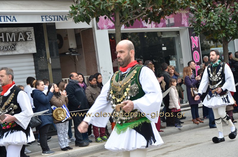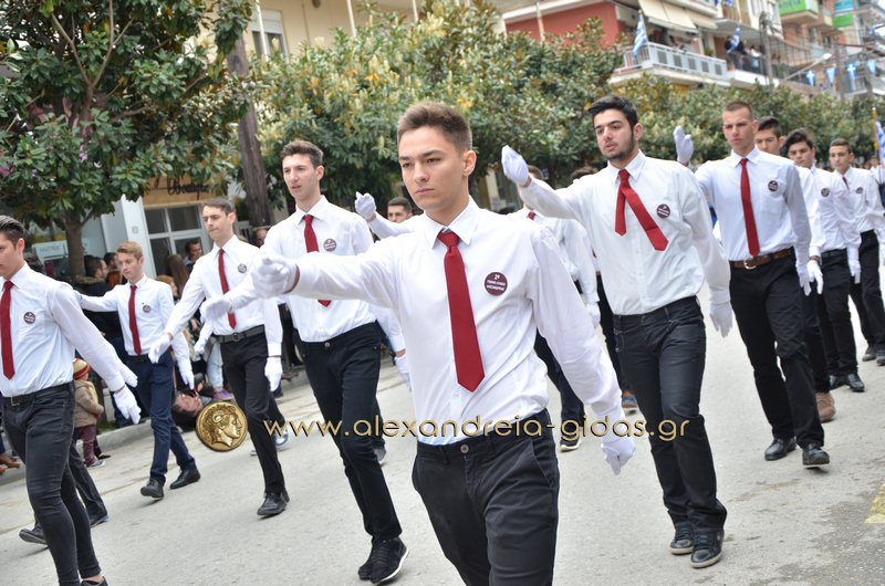 Σχολεία, πολιτιστικοί και αθλητικοί σύλλογοι, οι πρόσκοποι Αλεξάνδρειας και ο στρατός παρέλασαν στην Βετσοπούλου κερδίζοντας το θερμό χειροκρότημα των πολιτών που κατέκλεισαν το κέντρο της Αλεξάνδρειας.