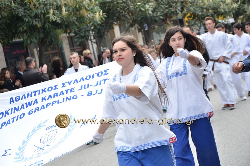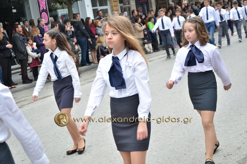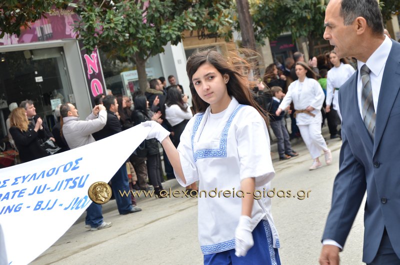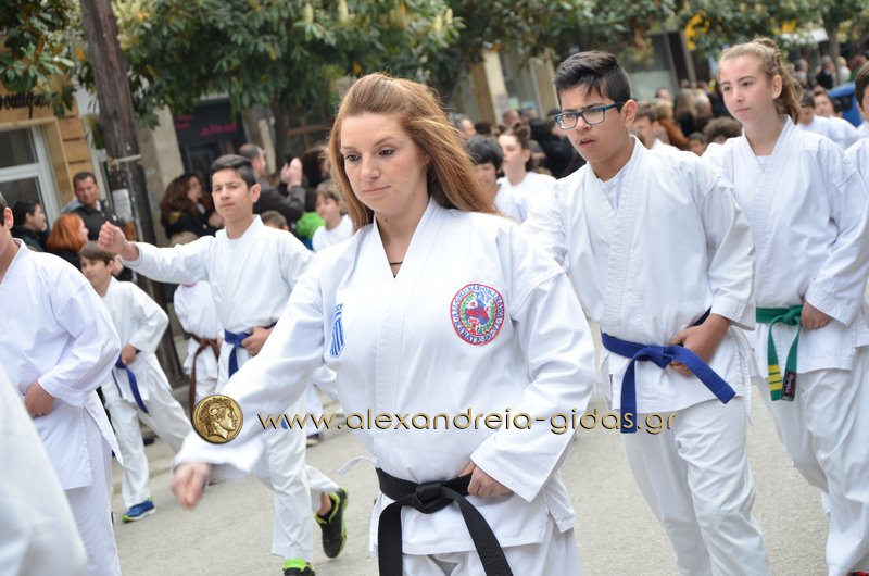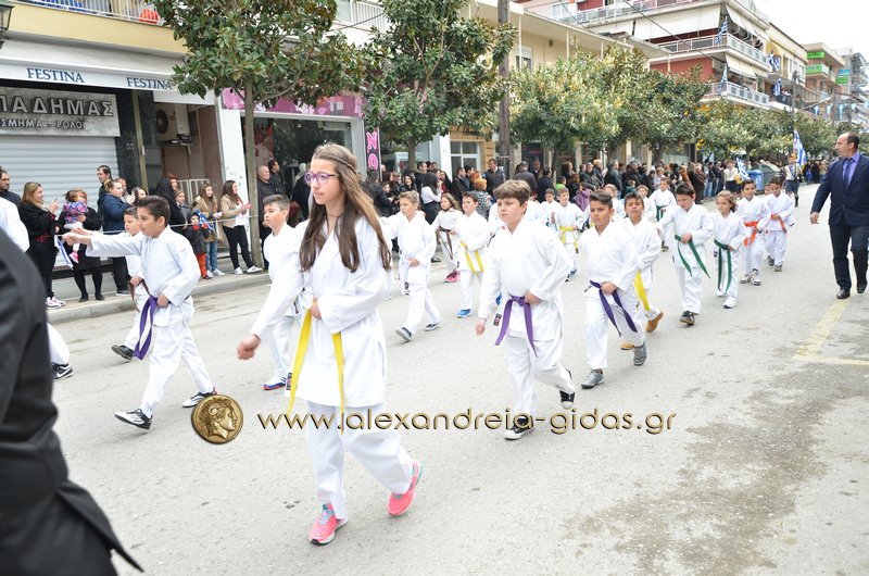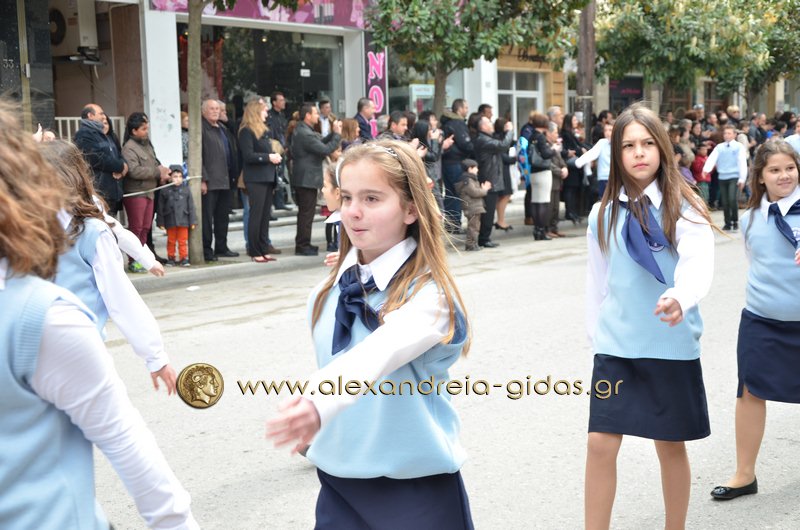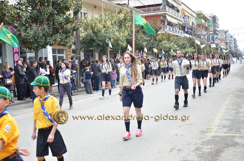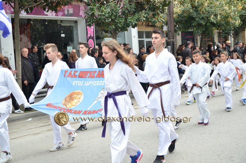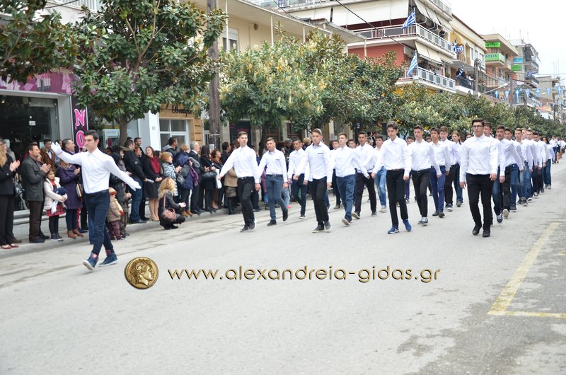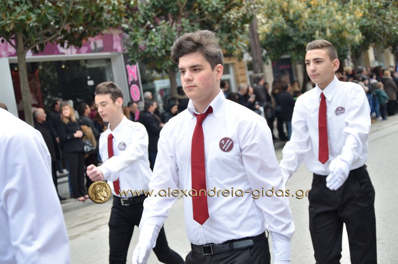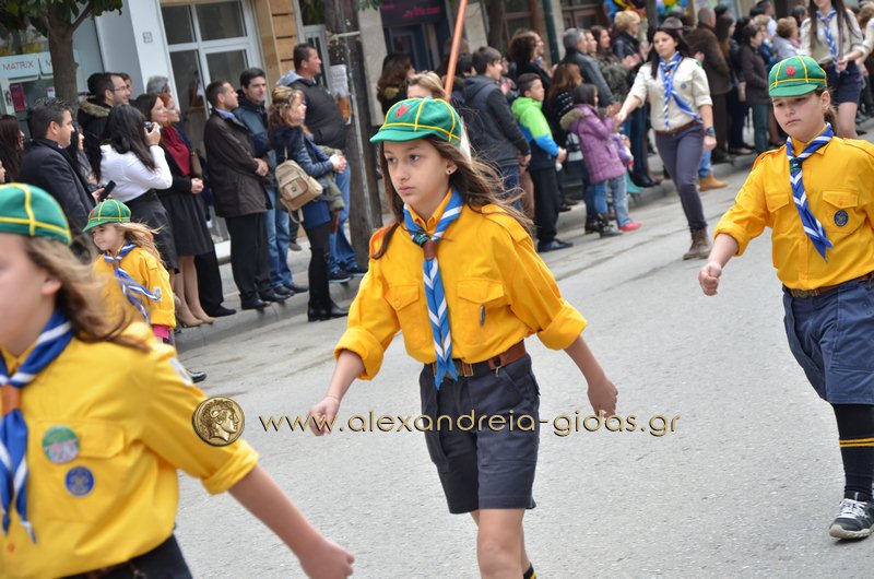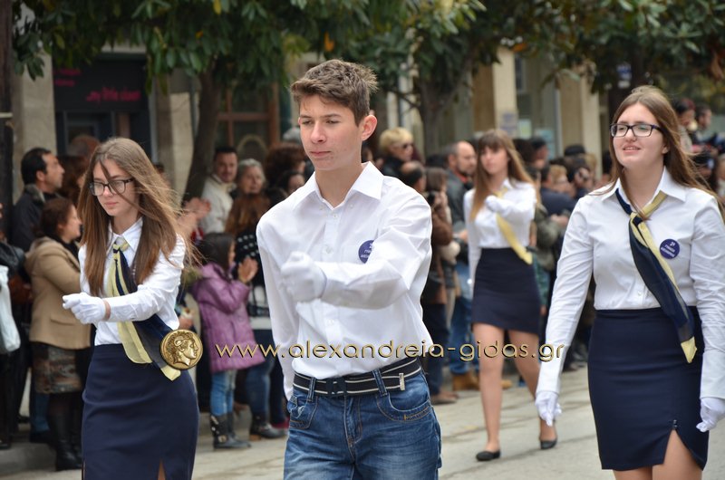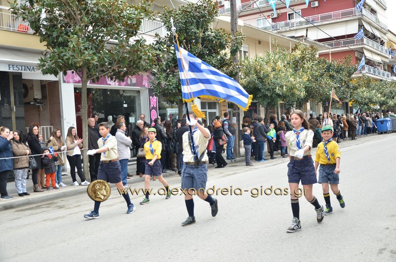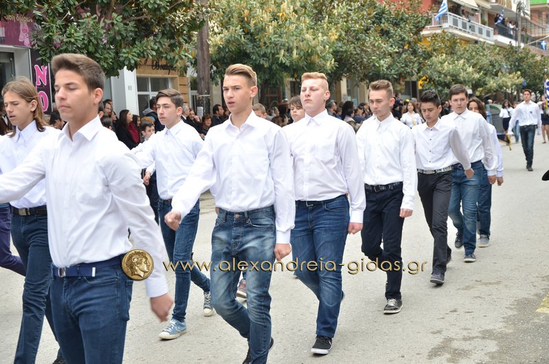 Σχολεία, πολιτιστικοί και αθλητικοί σύλλογοι, οι πρόσκοποι Αλεξάνδρειας και ο στρατός παρέλασαν στην Βετσοπούλου κερδίζοντας το θερμό χειροκρότημα των πολιτών που κατέκλεισαν το κέντρο της Αλεξάνδρειας.