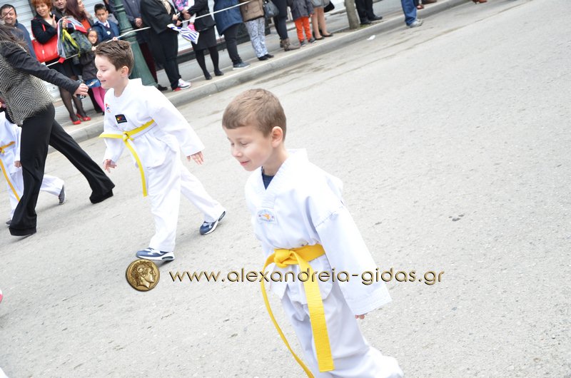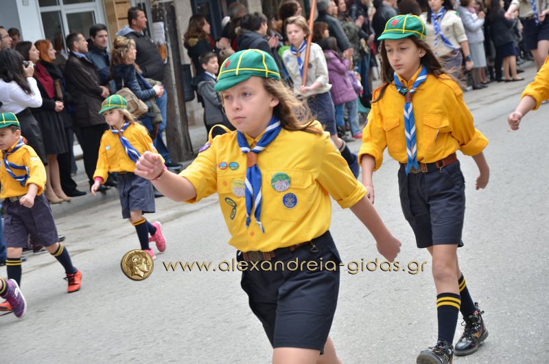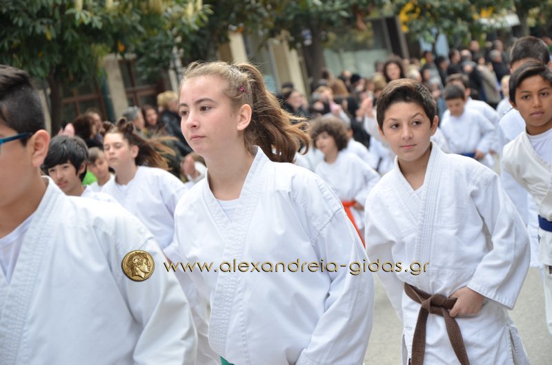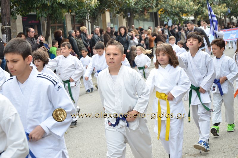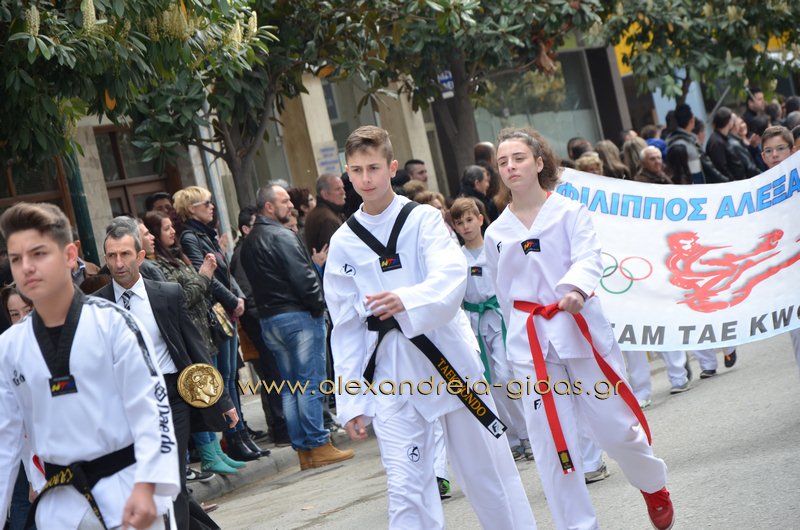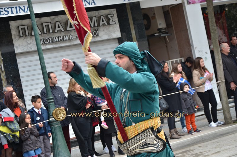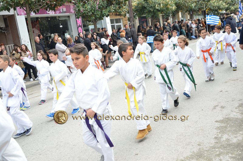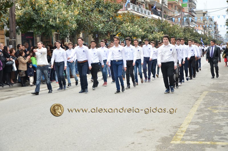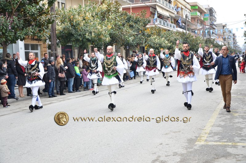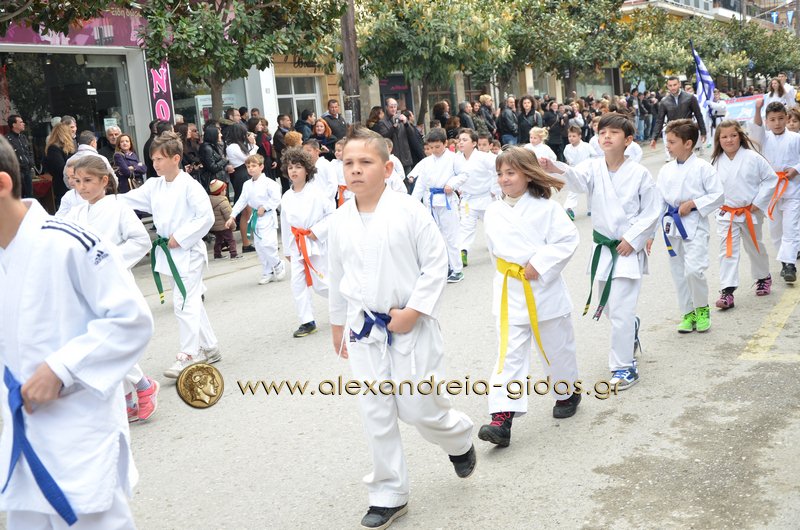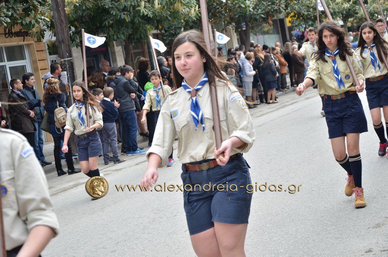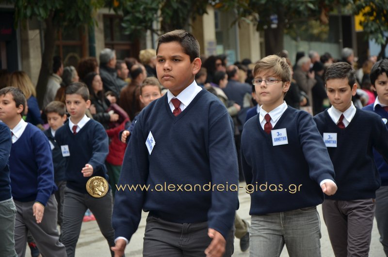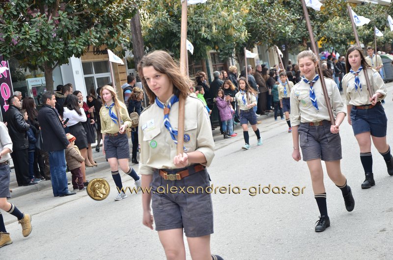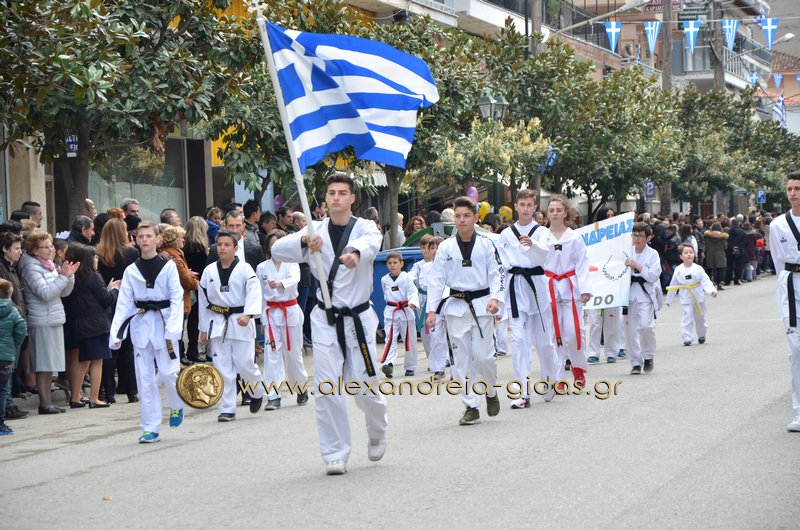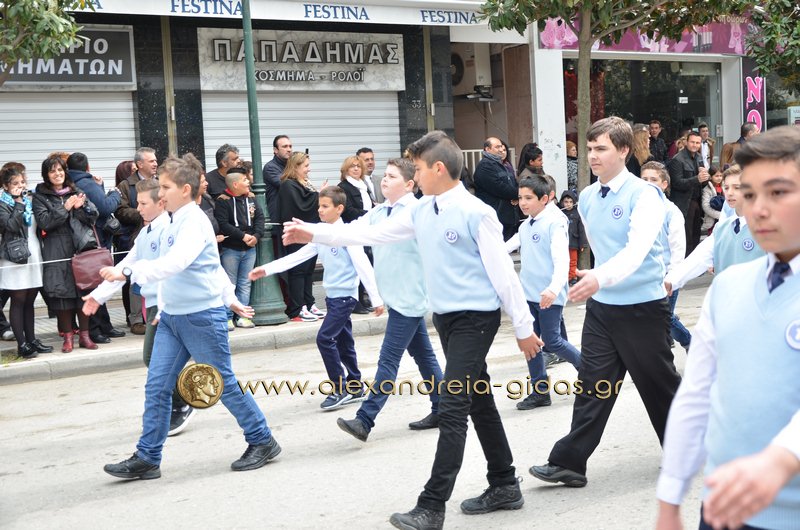 Σχολεία, πολιτιστικοί και αθλητικοί σύλλογοι, οι πρόσκοποι Αλεξάνδρειας και ο στρατός παρέλασαν στην Βετσοπούλου κερδίζοντας το θερμό χειροκρότημα των πολιτών που κατέκλεισαν το κέντρο της Αλεξάνδρειας.
