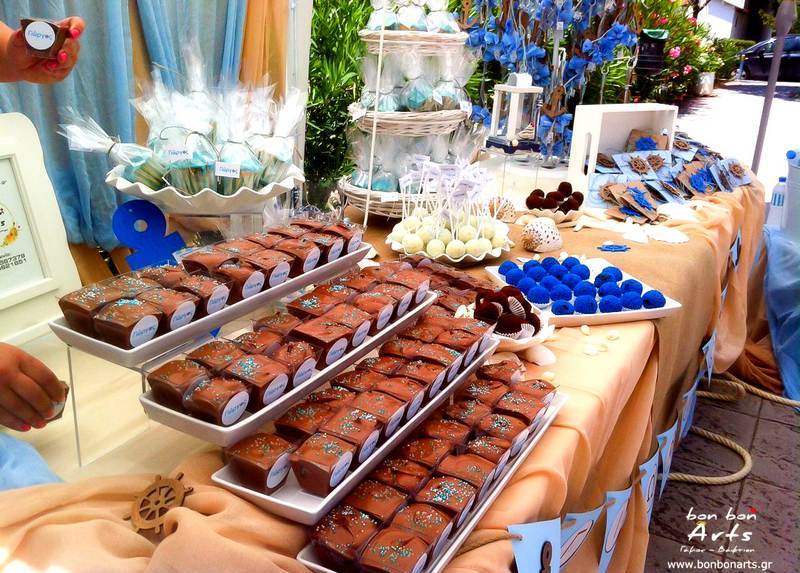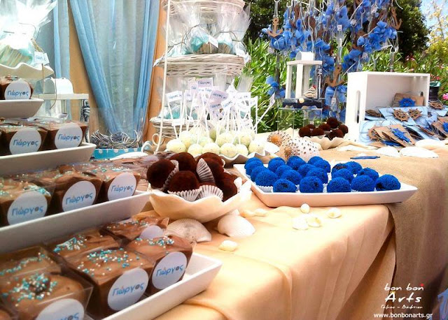 Με τη θέα της θάλασσας επιλέχθηκε η απόλυτη ναυτική βάπτιση και ταυτόχρονα πρωτότυπη με πολύ μοντέρνους χρωματικούς συνδυασμούς. Το γαλάζιο της θάλασσας και το μπεζ της άμμου μπλέχτηκαν και έδωσαν ένα καταπληκτικό αποτέλεσμα.