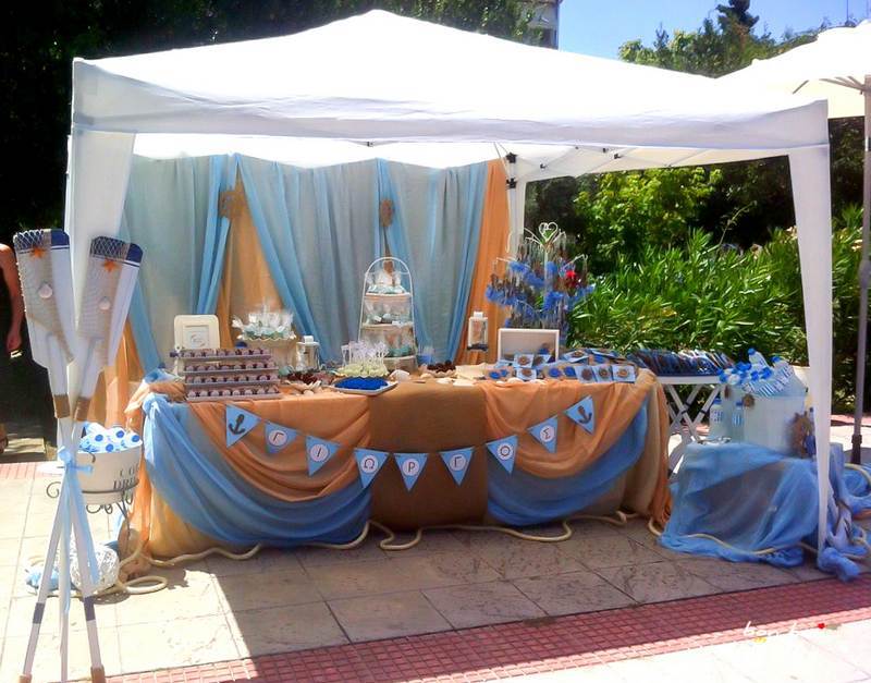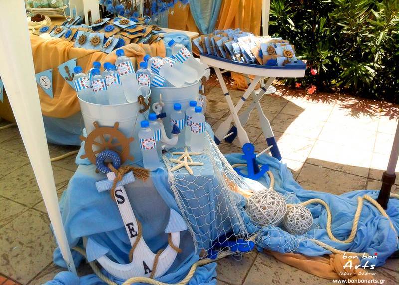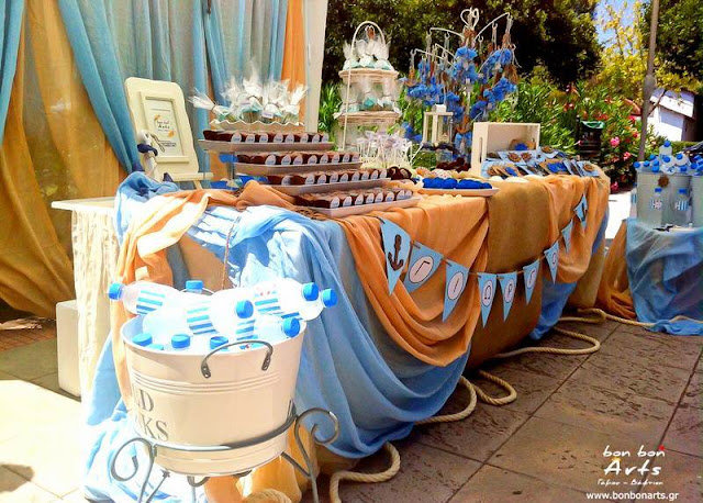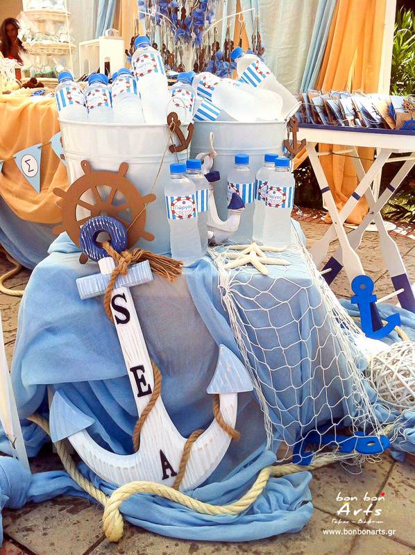 bonbonΜε τη θέα της θάλασσας επιλέχθηκε η απόλυτη ναυτική βάπτιση και ταυτόχρονα πρωτότυπη με πολύ μοντέρνους  χρωματικούς συνδυασμούς.  Το γαλάζιο της θάλασσας και το μπεζ της άμμου μπλέχτηκαν και έδωσαν ένα καταπληκτικό αποτέλεσμα.