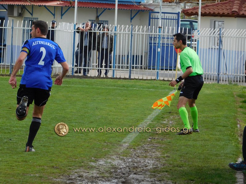 Το σκορ άνοιξε 0 Ντεβέσα στο 8΄ (1-0). Ο Καρακατσάνης διπλασίασε τα τέρματα του Αιγινιάκου ενώ το τελικό 3-0 πέτυχε ο Γκούρτσας.