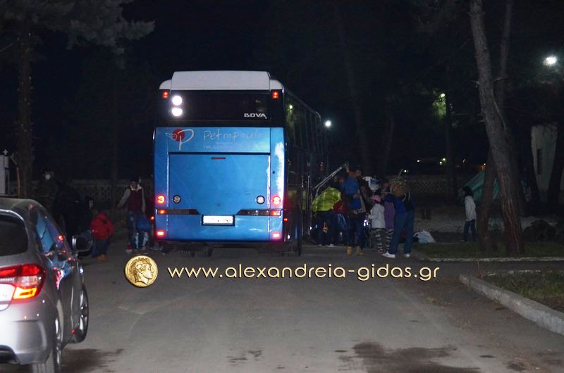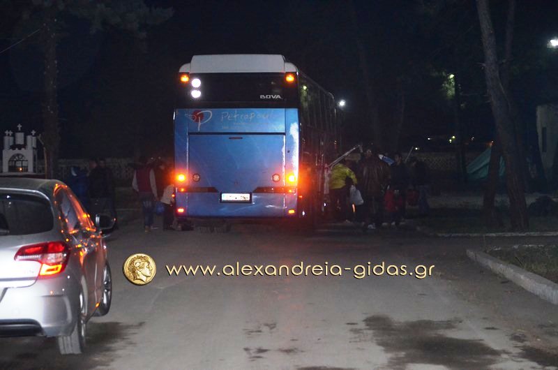 Λίγο πριν τις 9 το βράδυ του Σαββάτου 2 Απριλίου έφτασε ακόμα ένα λεωφορείο προσφύγων στο στρατόπεδο 722 στην Αλεξάνδρεια. Σε λίγο αναμένονται άλλα δύο λεωφορεία.