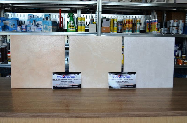 Ακόμα στο κατάστημα του Θωμά Μπόζιαρη μπορείτε να βρείτε πολλά σχέδια σε πλακίδια μπάνιου και πλακίδια τύπου ξύλου.