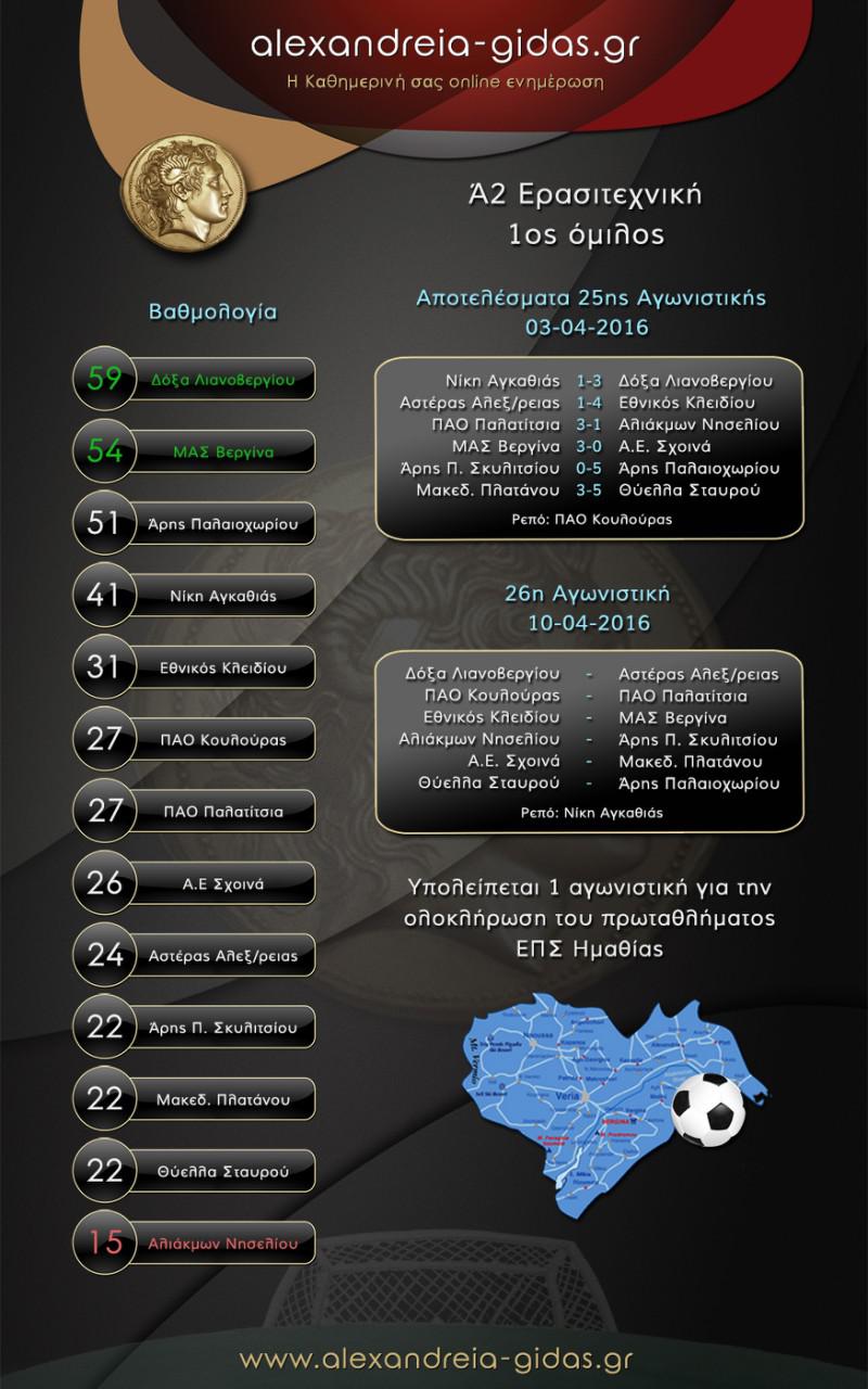 Με την 26η αγωνιστική ολοκληρώνεται απόψε το πρωτάθλημα στον Α΄ Όμιλο της Α2 στην ΕΠΣ Ημαθίας.