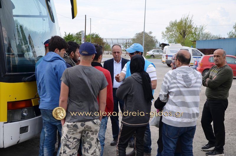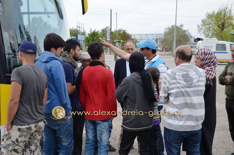Το λεωφορείο είναι από την Ειδομένη όπως μας πληροφόρησε ο βουλευτής Ημαθίας του ΣΥΡΙΖΑ Χρήστος Αντωνίου ο οποίος βρίσκεται στο σημείο και εξηγεί μαζί με μεταφραστή την κατάσταση η οποία υπάρχει στο κέντρο φιλοξενίας, στους ανθρώπους που έφτασαν στην πόλη μας.
